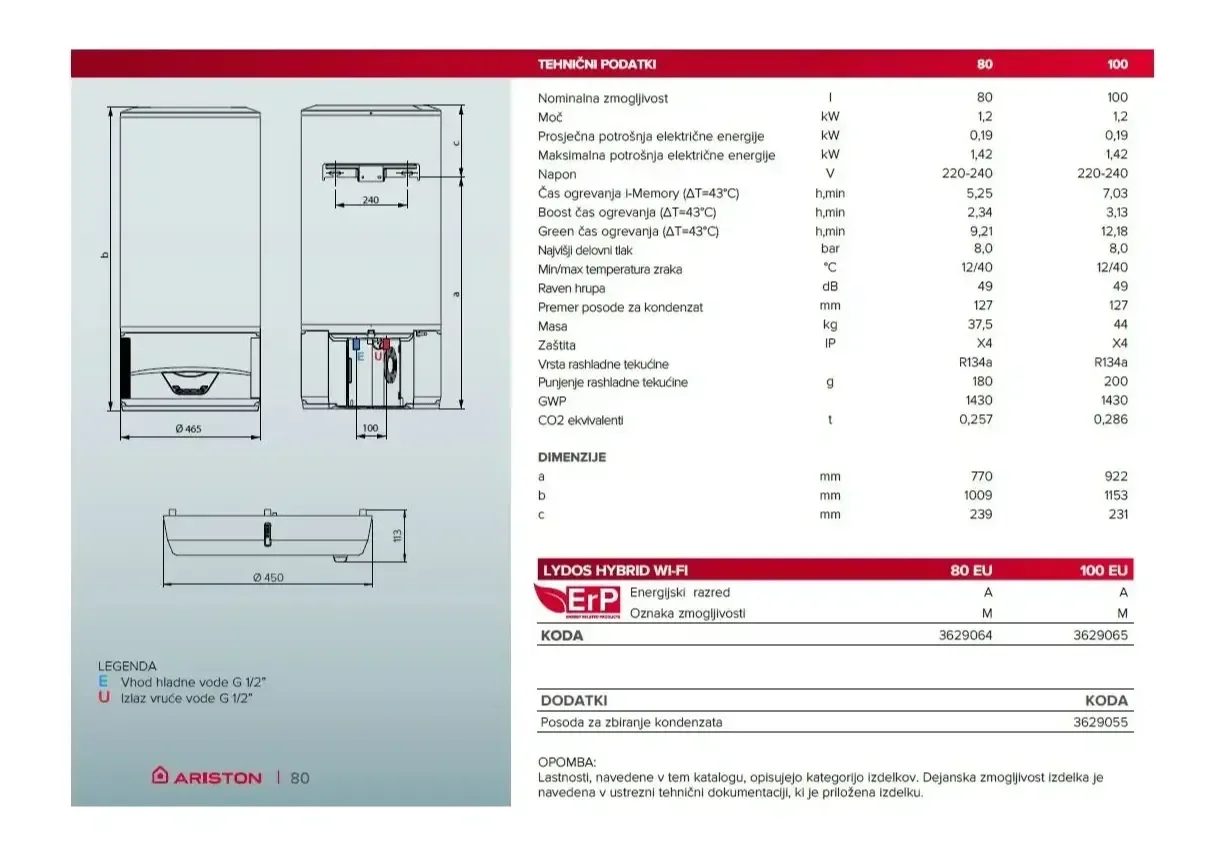 Hibridni grelnik vode Ariston Lydos Hybrid 80 WiFi