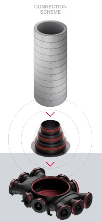 Priključni konektorji se uporabljajo za povezavo razdelilca z dovodnimi ali izpušnimi (izoliranimi) cevmi, povezanimi s centralno rekuperator enoto.