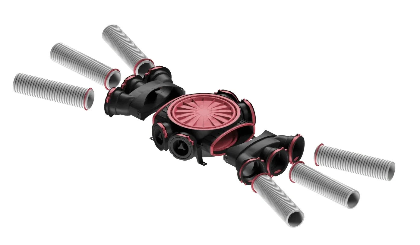 Ena razdelilna omarica omogoča priključitev več posameznih cevi in en Aduro glavni centralni (ali stranski) vod. Razdelilec se uporabi za dovod ali odvod zraka, ni pa ga možno uporabiti za oboje hkrati.