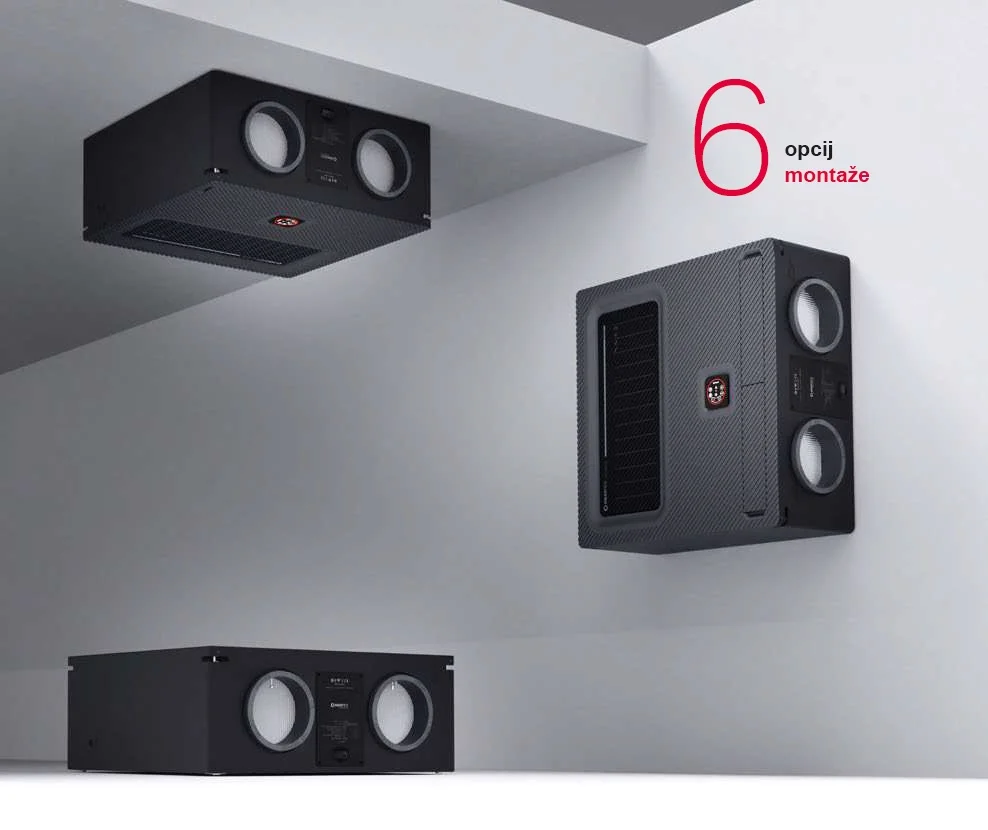 Omogoča namesitev v kar 6 različnih pozicijah brez učinka na izkoristek delovanja zato je tudi montaža enostavna (tla, stena ali strop, leva ali desna usmerjenost). Vsebuje intuitiven upravljalnik z zaslonom na dotik, ki ga je moč sneti z ohišja in premestiti na poljubno mesto.
