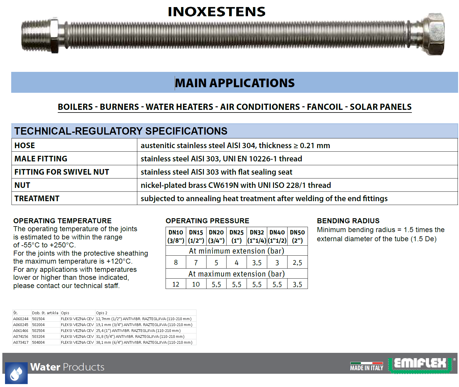 Fleksi vezna cev, raztegljiva... primerna za uporabo v sistemih ogrevanja z namenom za preprečevanje širjenja vibracij