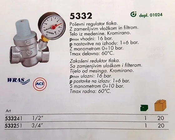 Reducirni ventil CALLEFI serije 5332 z manometrom
