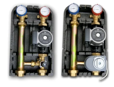 Set se uporablja za regulacijo temperature v ogrevalnih sistemih. Set je sestavljen v kombinaciji s 3 potnim mešalnim ventilom, na katerega je mogoča namestitev motornega pogona Barberi za avtomatsko regulacijo temperature.