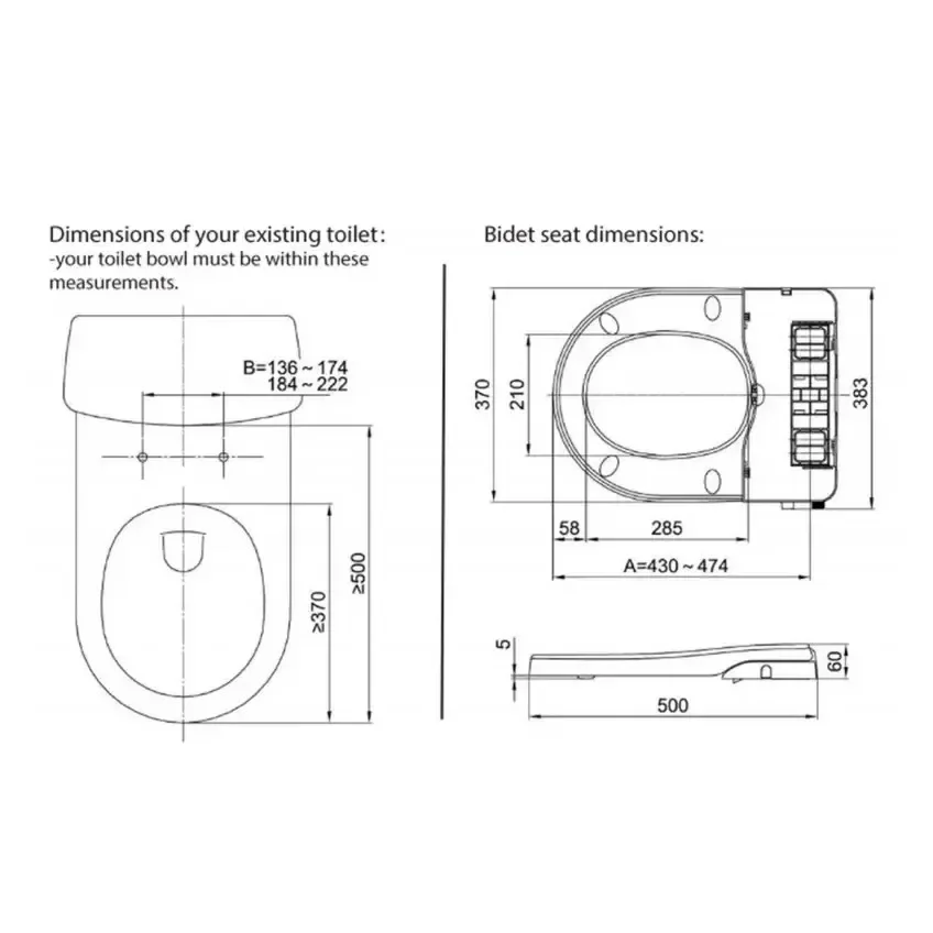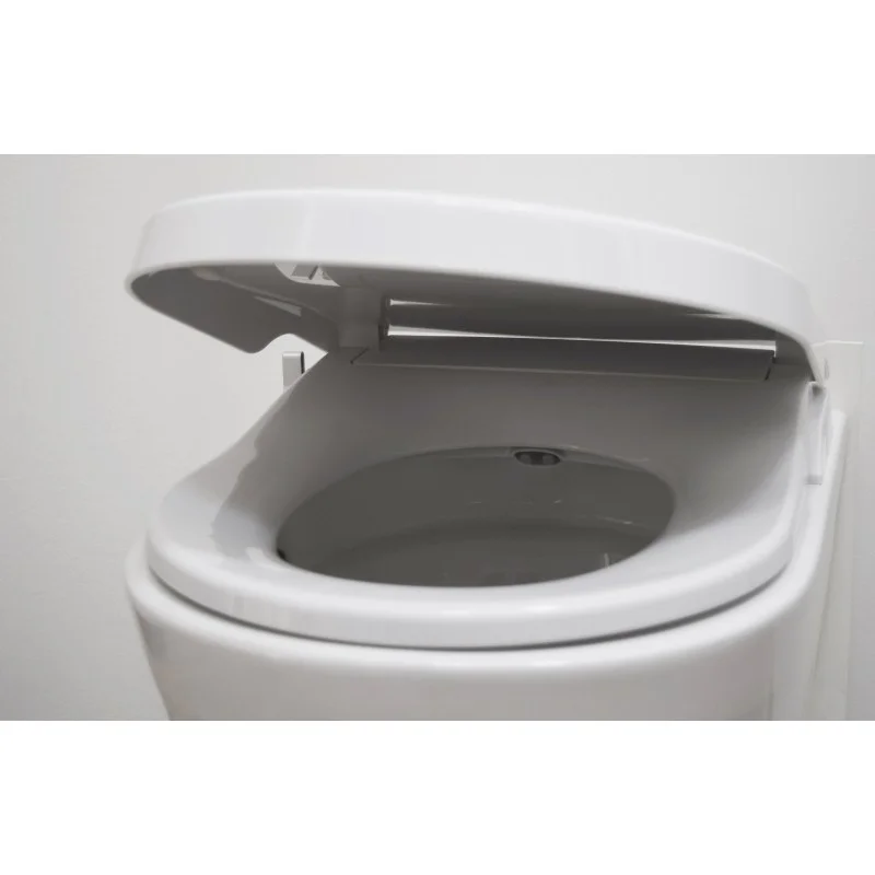 Visok samo neverjetnih 6cm. Tako daje videz običajnega modernega wc sedeža. Preprosta montaža - Zgolj nadomesti vašo obstoječo wc školjko, ter se priklopi na mrzlo vodo. Priklop na elektriko ni potreben! Visoko kvalitetno! Priklop iz medenine, kakovostna cev z kovinskim navojem priložena, šoba iz Anti-bakterijske umetne mase. Lasti si funkcijo samodejnega spiranja šobe pred in po uporabi. Nastavljiva moč curka, čiščenje spredaj in zadaj- dvojna šoba. Počasno zapiranje sedeža in pokrova - zaradi vrhunskega dušilca japonskega porekla je življenska doba 15+ let. Preprost za vzdrževanje: "quick release" funkcija za hitro odstranitev in namestitev