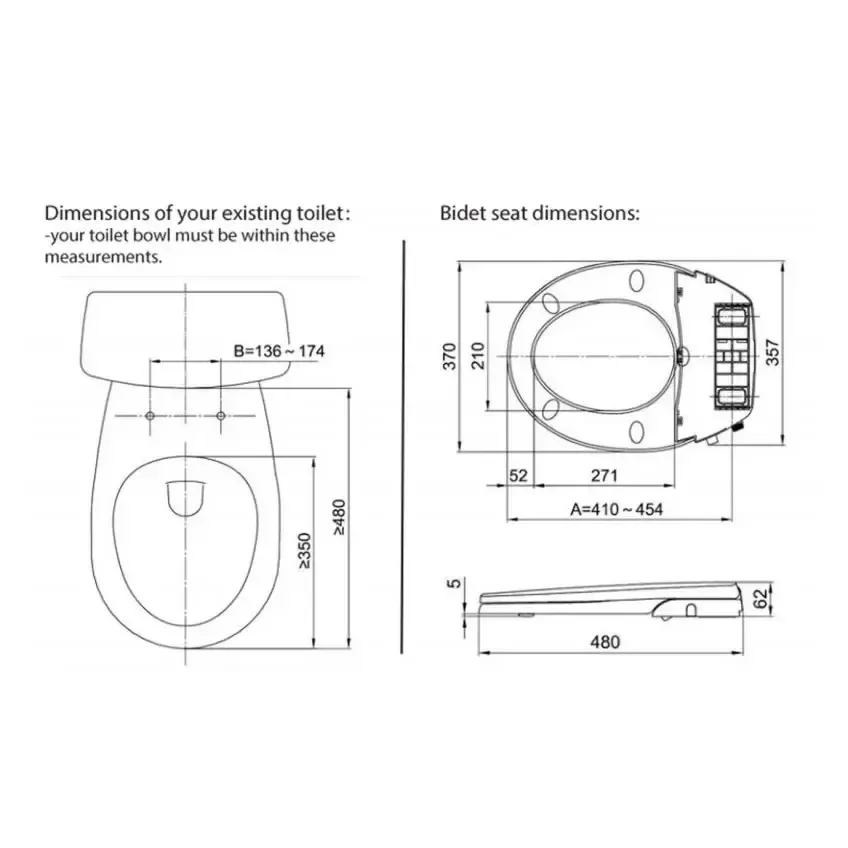 Visok samo neverjetnih 6cm. Tako daje videz običajnega modernega wc sedeža. Preprosta montaža - Zgolj nadomesti vašo obstoječo wc školjko, ter se priklopi na mrzlo vodo. Priklop na elektriko ni potreben! Visoko kvalitetno! Priklop iz medenine, kakovostna cev z kovinskim navojem priložena, šoba iz Anti-bakterijske umetne mase. Lasti si funkcijo samodejnega spiranja šobe pred in po uporabi. Nastavljiva moč curka, čiščenje spredaj in zadaj- dvojna šoba. Počasno zapiranje sedeža in pokrova - zaradi vrhunskega dušilca japonskega porekla je življenska doba 15+ let. Preprost za vzdrževanje: "quick release" funkcija za hitro odstranitev in namestitev