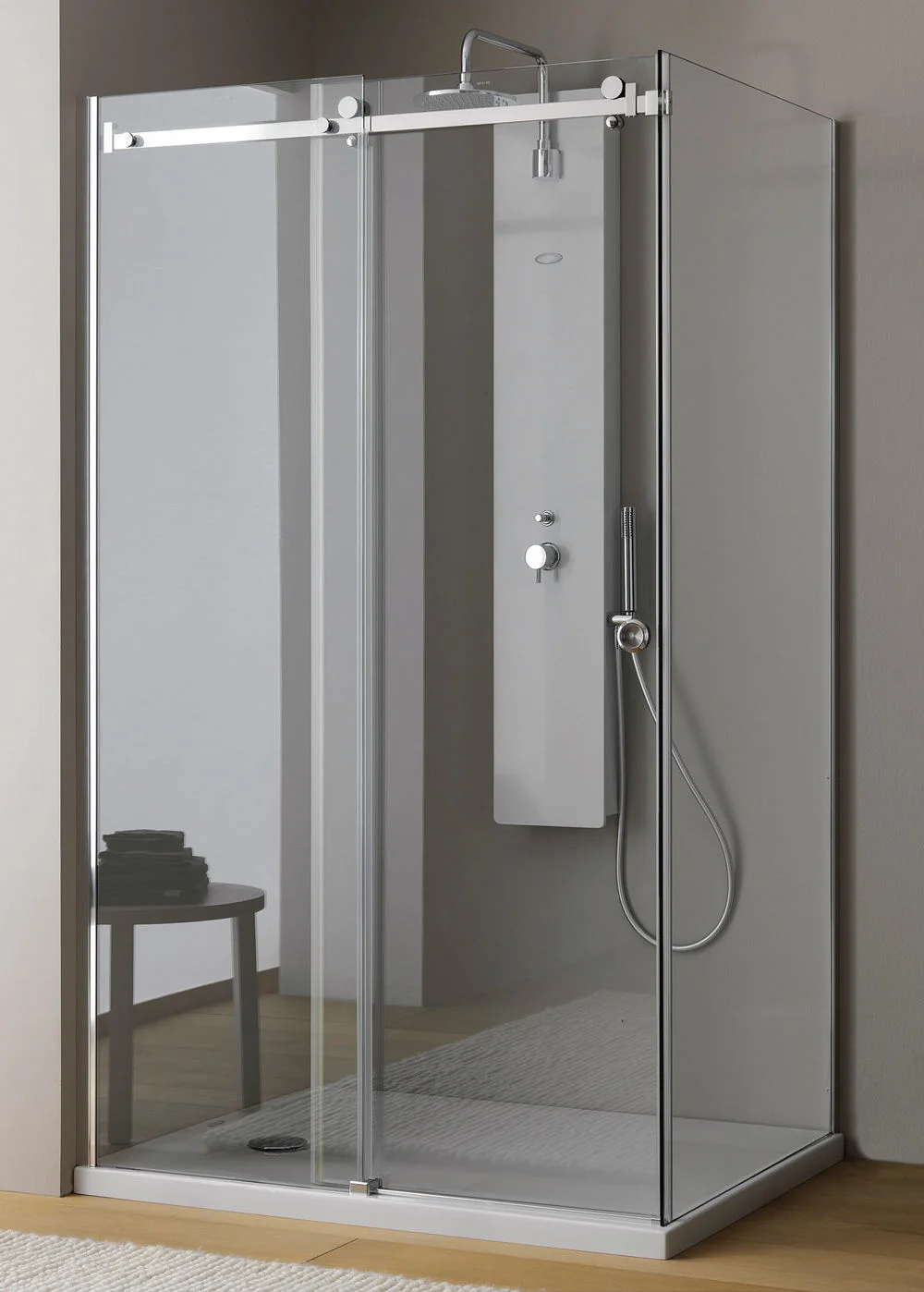 Univerzalna tuš kabina Kolpasan Dorsa TK s silver brill profili, tuš kabina ima možnost montaže levo ali desno, z enostranskim odpiranjem.