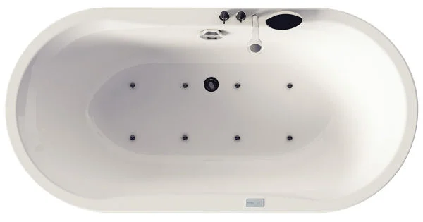 Samostoječa kopalna kad Kolpasan Dream SP z masažnim zračnim sistemom in s prelivno garnituro, kad in obloga iz enega dela