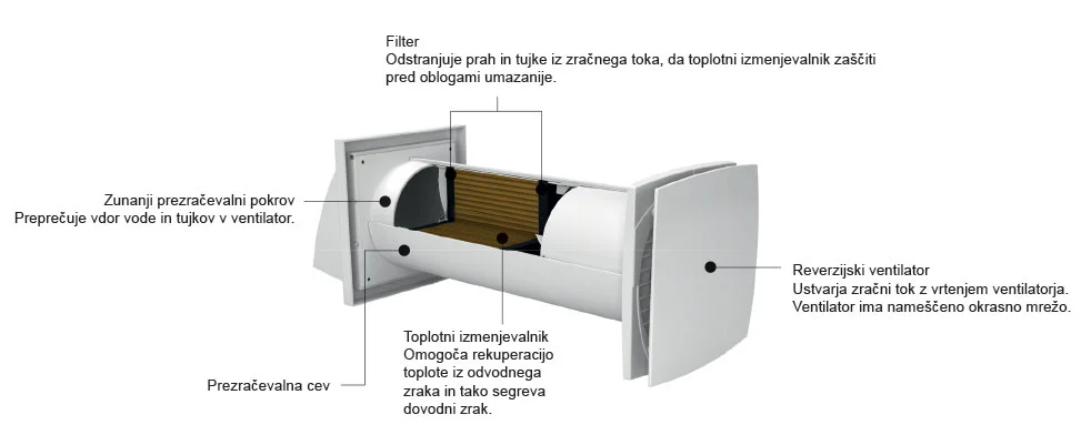 Inverterska prezračevalna naprava z rekuperacijo zraka za lokalno namestitev