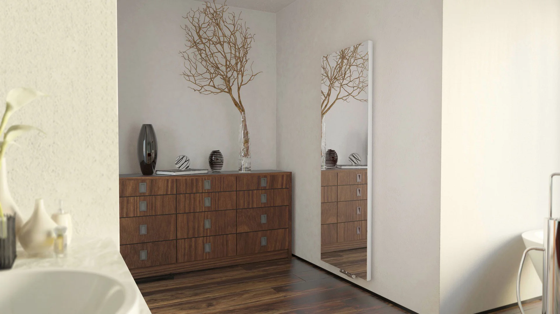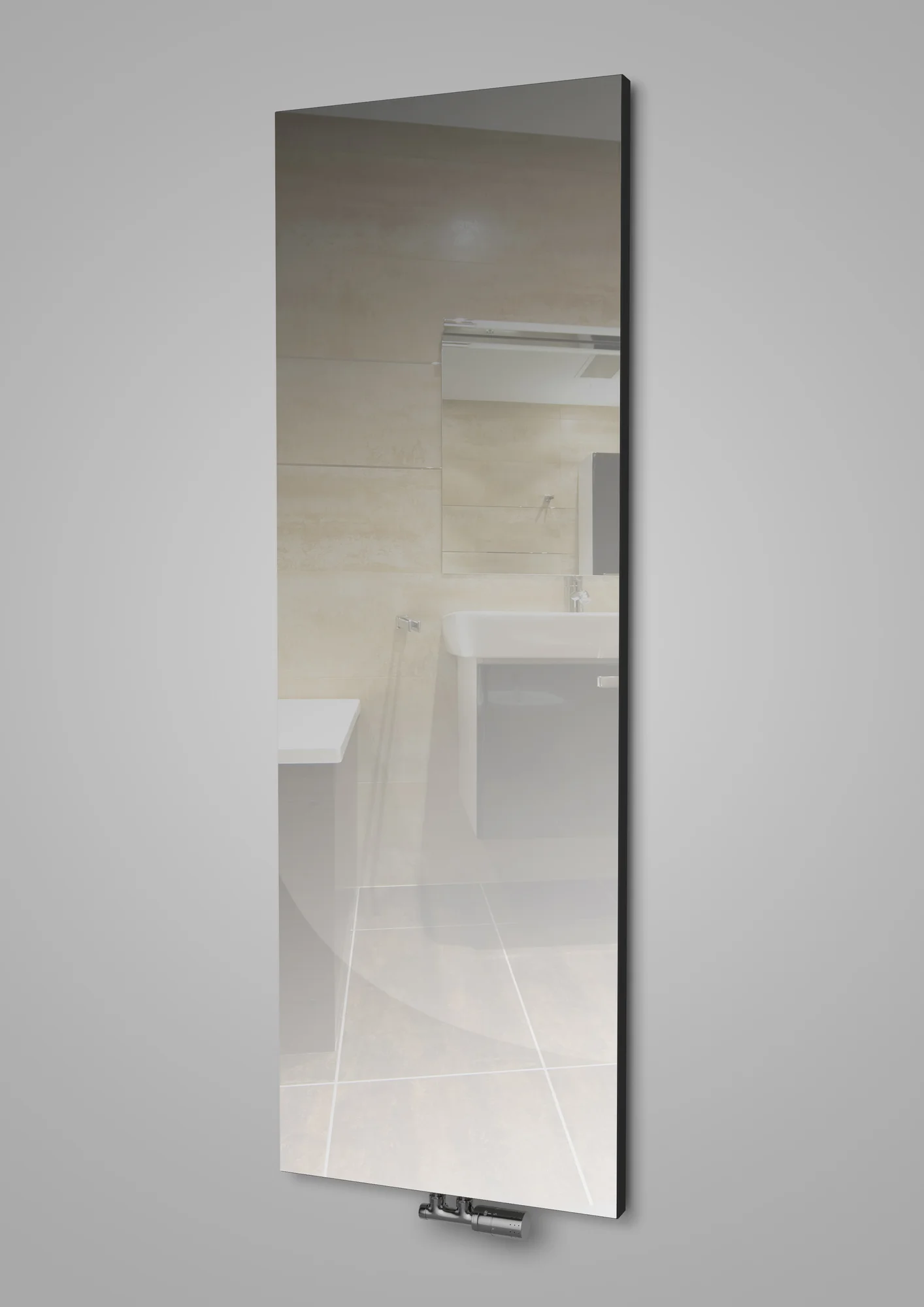 Design stilski radiator TERMA CASE SLIM MIRROR (z ogledalom na prednji plošči) je tanek in povsem gladki radiator (PLAN) za montažo povsem blizu stene. Je produkt, ki razume vse Vaše potrebe, vključno z grafično podobo po meri.