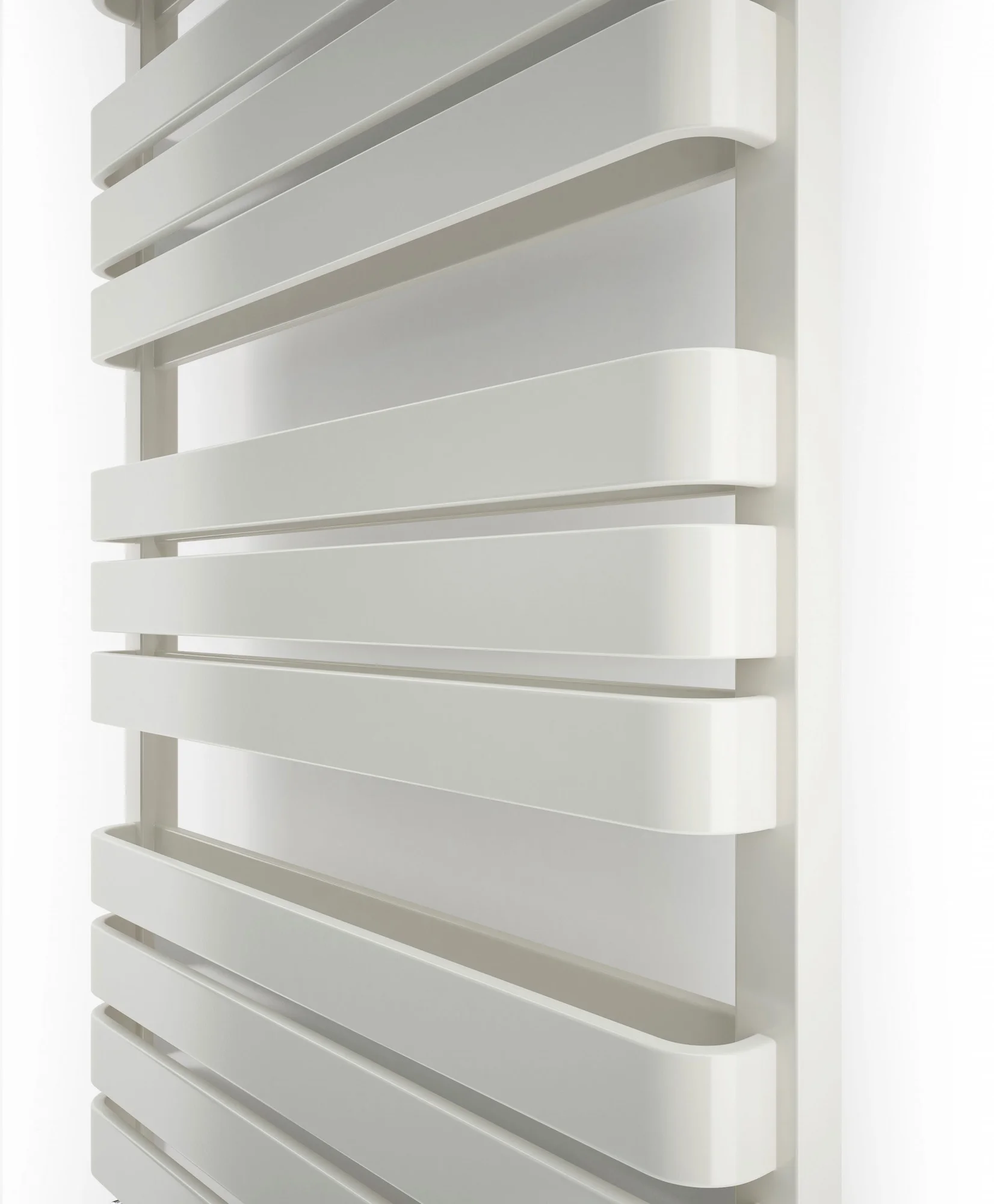 Pokončni stilski cevni radiator TERMA WARP T BOLD je narejen iz dveh linij ploščatih zaoblenih prečnih profilov in je prikupna alternativa klasičnim kopalniškim radiatorjem. Zaradi velike površina ima in dveh linij cevi ima radiator izjemno veliko moč in je uporaben tudi kot sušilnik brisač in perila. Priključiti ga je možno na: