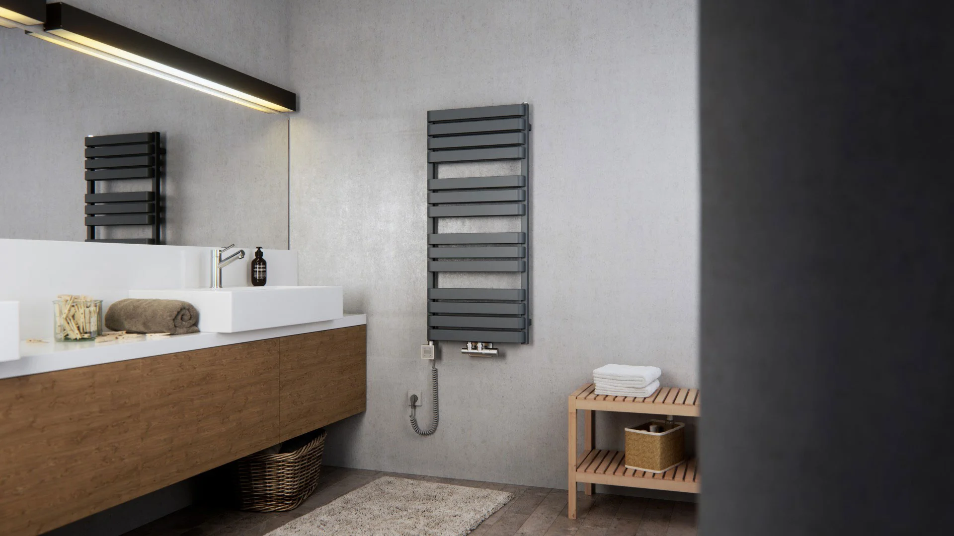 Na voljo tudi električna izvedba radiatorja ONE z diskretnim grelcem, integriranim v radiator.