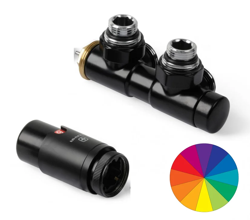 Set AllInOne Terma DESIGN radiatorski ventil, spodnji term., kotna DESNA izvedba, COLOR