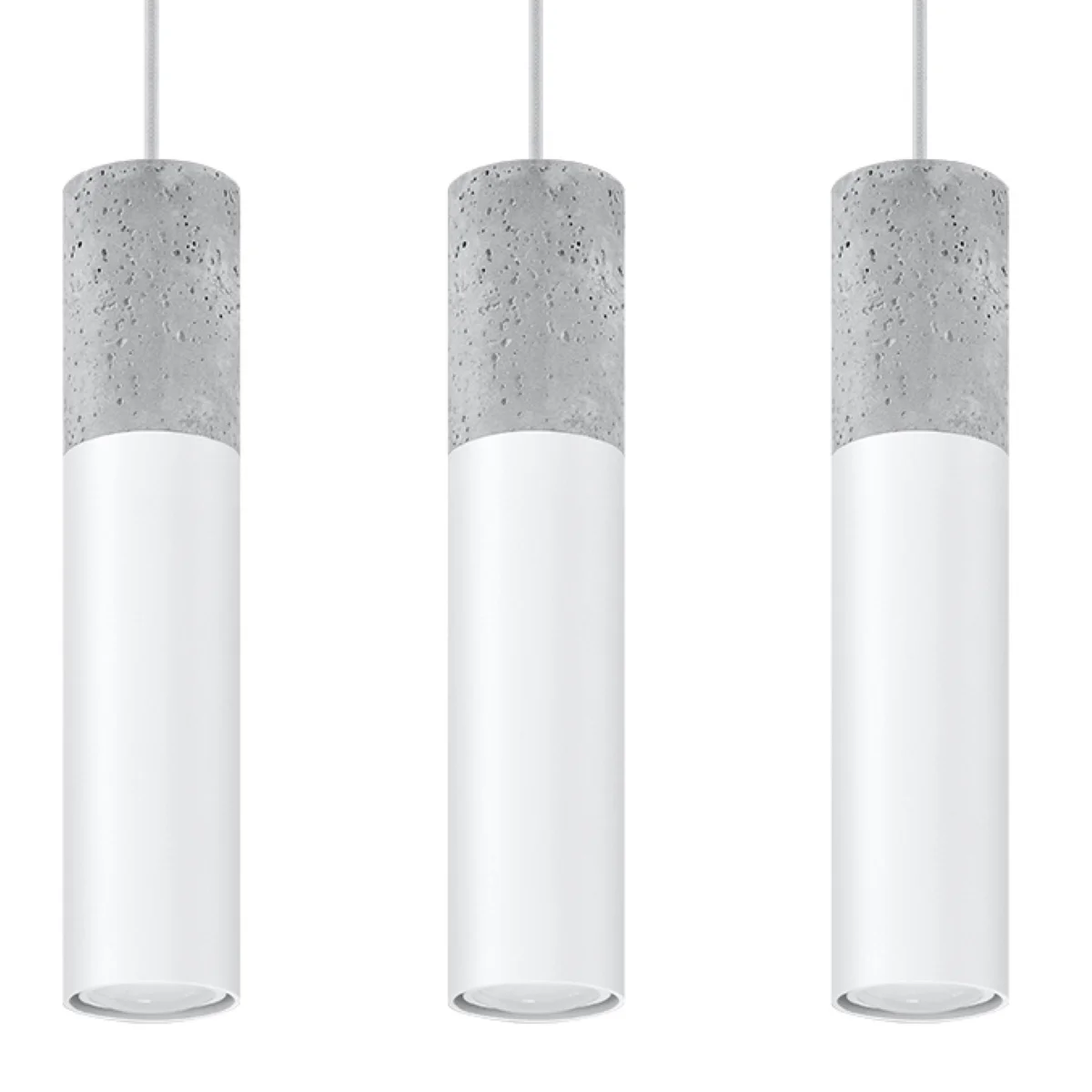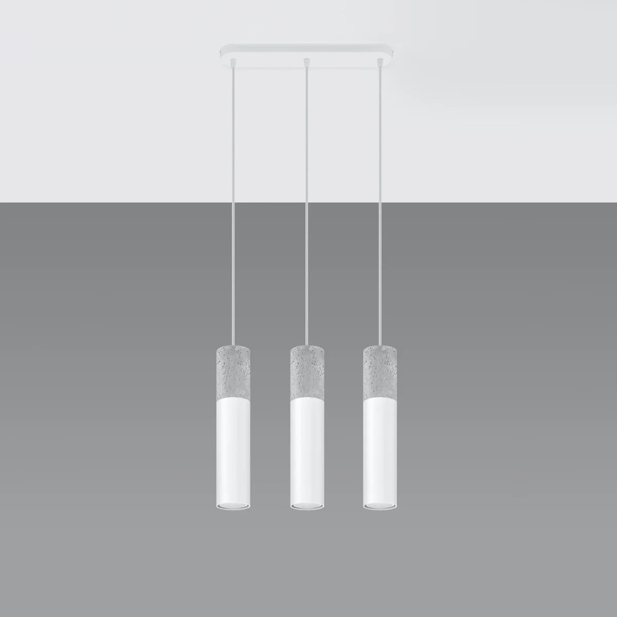 Hladna stilistika betona in jekla se bo ujemala k sodobnim notranjostim. Takšna kombinacija postaja vse bolj modna. Lahko jo najdemo v avantgardnih studiih in stanovanjih, ki so opremljena po vzoru loftov. || Žarnica: GU10, 3x40W, 3x12W LED, 50-60Hz, ~ 220-230V, IP20, razred naprave I Žarnica ni vključena. Dimenzije: 45/6/90 cm Dimenzija senčnika: 6/30 cm Material: jeklo, beton Barva: bela, siva