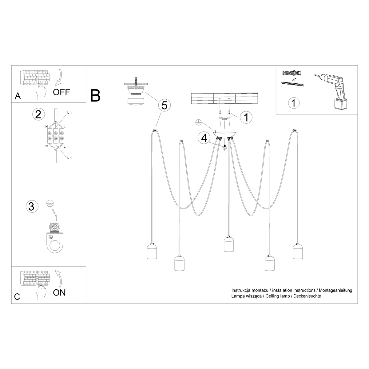 Svetilka: E27, 5x največ 15 W LED, 50 Hz, ~230V, IP20, razred I aparata