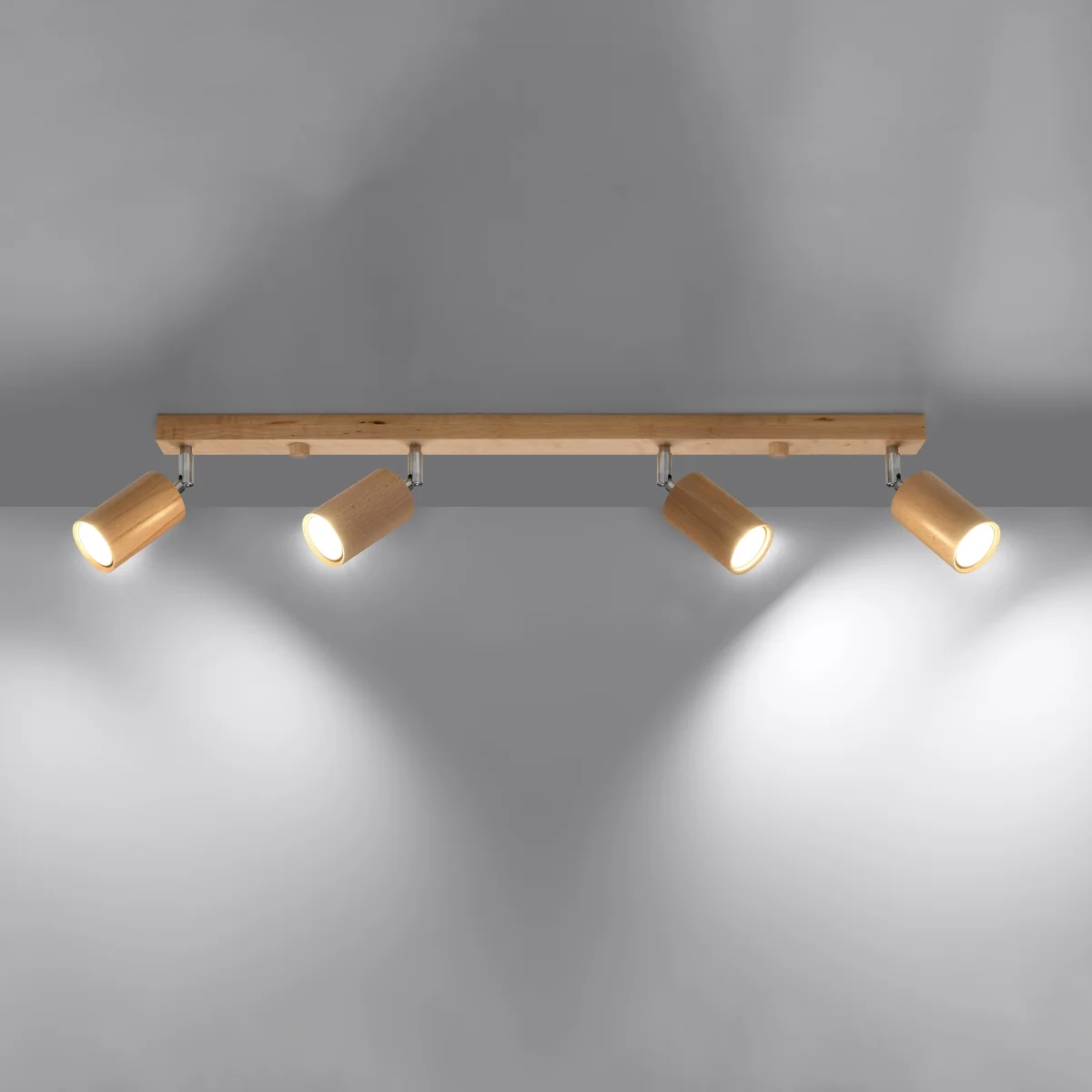 Stropna svetilka BERG 4 naravni les (80x5x20cm)