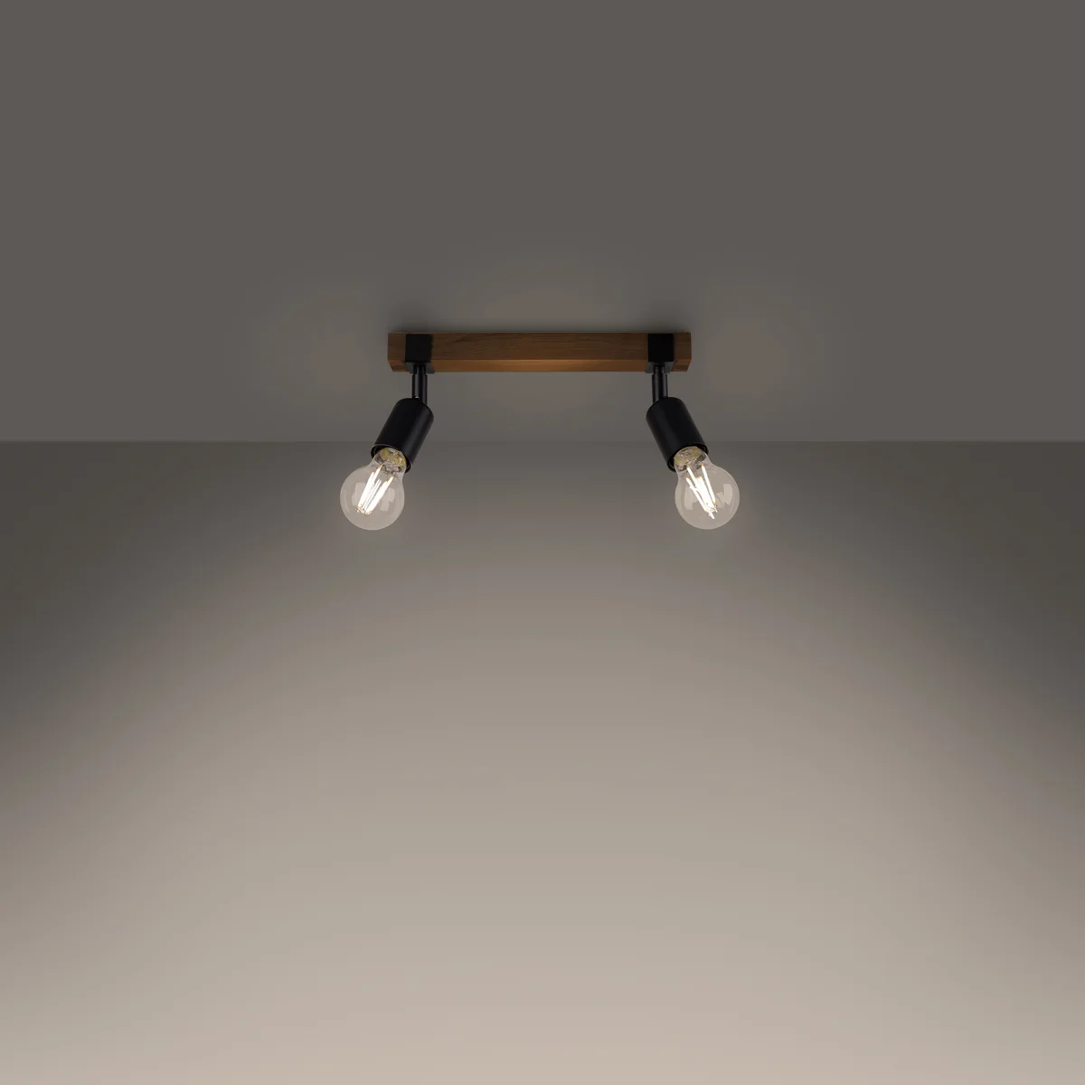 Elegantno, a vendar značilno - tako je osvetlitev ZUCA. Povezuje naravno lepoto lesa z modernostjo jekla in izpostavljenimi dekorativnimi žarnicami, postajajoč ena najbolj modnih notranjih poudarkov v zadnjih letih. Večdimenzionalni dizajn serije ZUCA omogoča, da se svetilke odlično prilegajo tako loftovskim in industrijskim prostorom kot tudi dodajajo ostrino modernim in klasičnim prostorom. V ponudbi boste našli stenske svetilke z eno žarnico ter stropne svetilke z dvema, tremi ali štirimi svetlobnimi viri. Njihove dekorativne žarnice oddajajo toplo, rumenkasto svetlobo, ki ustvarja prijetno vzdušje v vsaki sobi. Ko izberete ZUCA, izberete odličen slog in edinstven značaj. || Svetilka: E27, 2x maksimalno 15 W LED, 50Hz, ~230V, IP20, razred I Svetilka ni priložena. Dimenzije: 38/15/14 cm Material: jeklo/drevo Barva: črna