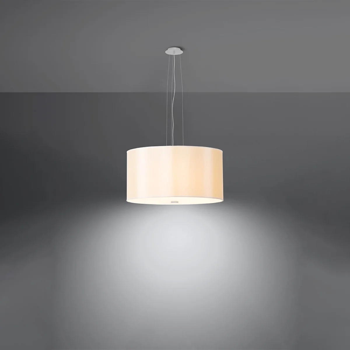 Idealna rešitev za vse, ki cenijo dober okus pri opremljanju prostorov, so svetilke iz serije OTTO. Predstavljajo odličen zaključek prostora, v katerem so uporabljene. Glede na velikost in barvo jih lahko uspešno uporabimo tako v sodobni kot tradicionalni notranji opremi. Velika prednost serije OTTO je univerzalna, okrogla oblika, zaradi katere se lahko uporabljajo v vsakem prostoru, ne glede na to, ali jih obesimo nad mizo v dnevni sobi ali na hodniku. || Žarnica: E27, 5x60W, 5x15W LED, 50-60Hz, ~ 220-230V, IP20, razred naprave I Žarnica ni vključena. Dimenzije: 50/50/115 cm Dimenzija senčnika: 50/25 cm Material: tkanina, steklo, jeklo Barva: bela