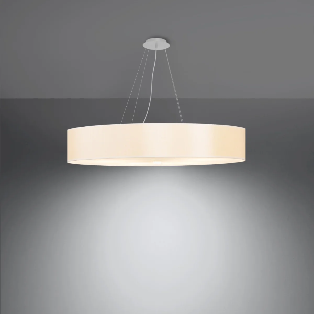 Za vse, ki obožujejo eleganco in stil, so odlična rešitev lestenci serije SKALA. Ta okrogli lestenci je idealna rešitev za tiste, ki želijo svojim prostorom dodati eleganco in zagotoviti zelo dobro osvetlitev. Lestenci serije SKALA zagotavljajo najvišjo kakovost. Njihova velika prednost je univerzalnost. Uporabljajo se lahko v različnih prostorih, ki so opremljeni v modernem ali tradicionalnem slogu. Primerni so za dnevne sobe, spalnice, kuhinje, kopalnice, otroške in mladinske sobe. || Žarnica: E27, 6x60W, 6x15W LED, 50-60Hz, ~ 220-230V, IP20, razred naprave I Žarnica ni vključena. Dimenzije: 90/90/105 cm Dimenzija senčnika: 90/15 cm Material: tkanina, steklo, jeklo Barva: bela