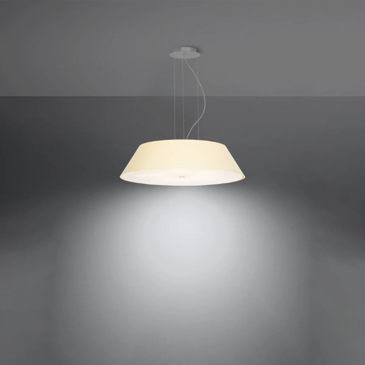 Lustre iz serije VEGA se bodo odlično predstavili v vsakem prostoru. Odlikujejo se zanimivim univerzalnim oblikom. To so lustri vrhunske kakovosti, ki niso le vir svetlobe, ampak tudi zanimiv dekorativni element prostorov. Zaradi tega uživajo odlične ocene. Lustri iz serije VEGA se bodo še posebej dobro obnesli v prostorih, kot so kuhinja ali kopalnica, vendar jih lahko uspešno uporabljamo tudi v predsobi, hodniku, spalnici ali v otroških in mladinskih sobah. || Žarnica: E27, 5x60W, 5x15W LED, 50-60Hz, ~ 220-230V, IP20, razred naprave I Žarnica ni vključena. Dimenzije: 60/60/105 cm Dimenzija senčnika: 60/15 cm Material: tkanina, steklo, jeklo Barva: bela