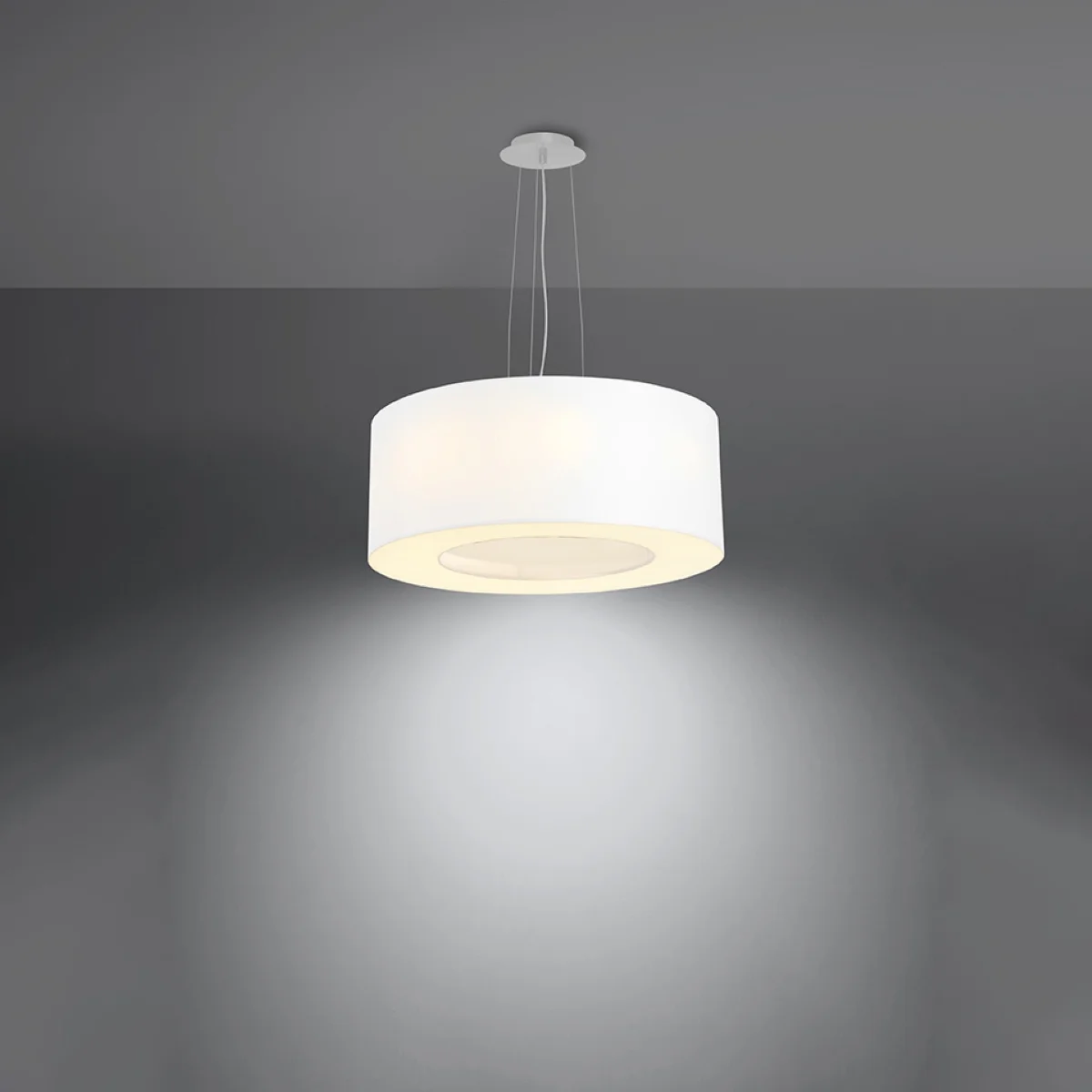 Zaradi velike elegance in zanimivega vzorca so lestenci serije SATURNO zelo priljubljeni med uporabniki. Odlične ocene so posledica tudi možnosti prilagajanja različnim prostorom in različnim slogom opremljanja. Notranji oblikovalci cenijo lestence SATURNO zaradi univerzalne oblike. Okrogel lestenc SATURNO se odlično prilega v predsobi, hodniku, na stopnišču, pa tudi nad mizo v jedilnici, v dnevni sobi, otroški sobi in sobi za najstnike. || Žarnica: E27, 5x60W, 5x15W LED, 50-60Hz, ~ 220-230V, IP20, razred naprave I Žarnica ni vključena. Dimenzije: 50/50/112 cm Dimenzija senčnika: 50/22 cm Material: tkanina, PVC, jeklo Barva: bela