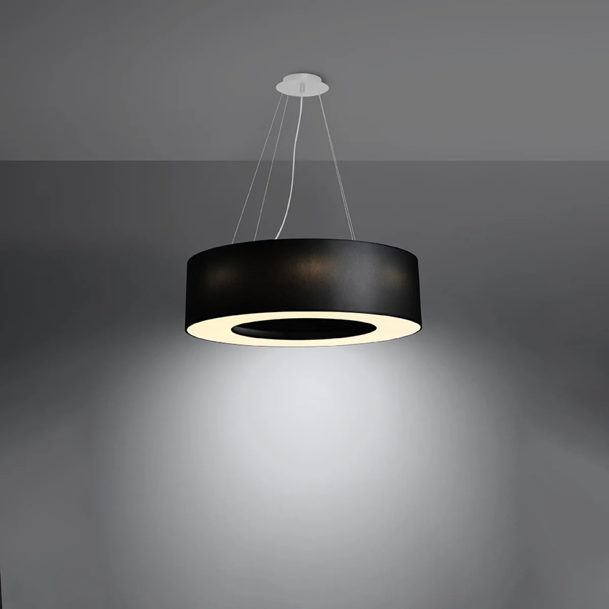Vsak, ki si želi na nebanalen način opremiti svoje prostore in jih osvetliti na edinstven način, bi moral uporabiti lestence iz serije SATURNO. Zahvaljujoč okrogli obliki, hkrati pa ozkemu prerezu in širokemu obsegu, se lestenci SATURNO odlično prilegajo predvsem v prostorih, kjer je vodilni motiv geometrija, minimalizem in sodobnost. Vendar pa se lestenci serije SATURNO dobro obnesejo ne le v sodobni notranji opremi, ampak se tudi dobro predstavijo v tradicionalnih prostorih. || Žarnica: E27, 6x60W, 6x15W LED, 50-60Hz, ~ 220-230V, IP20, razred naprave I Žarnica ni vključena. Dimenzije: 70/70/112 cm Dimenzija senčnika: 70/22 cm Material: tkanina, PVC, jeklo Barva: črna