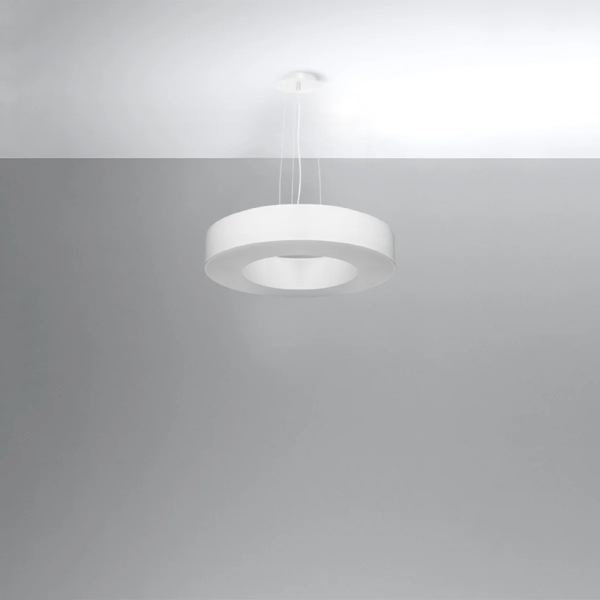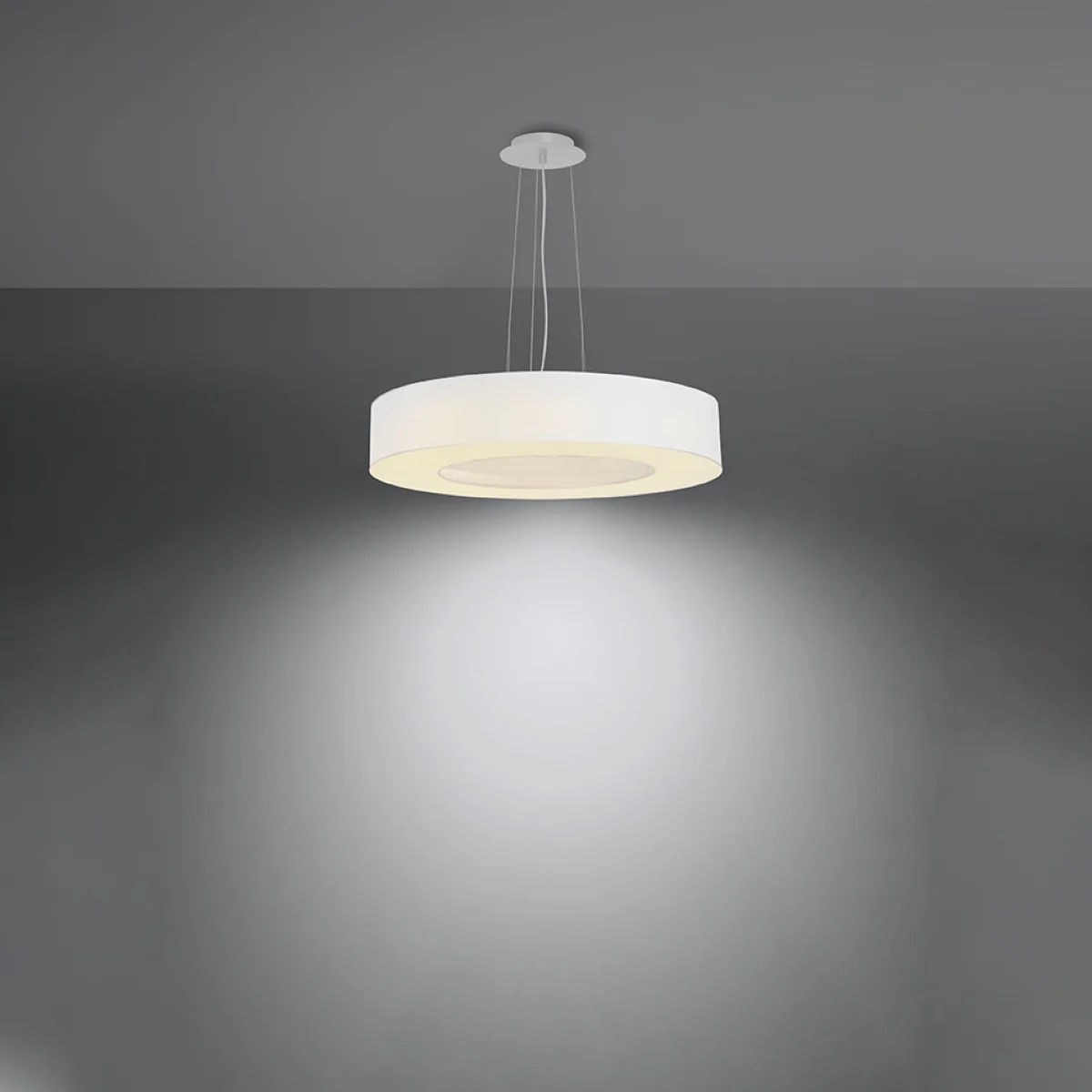 Vsak, ki si želi na nebanalen način opremiti svoje prostore in jih osvetliti na edinstven način, bi moral uporabiti lestence iz serije SATURNO SLIM. Zahvaljujoč okrogli obliki, hkrati ozkemu prerezu in širokemu obsegu, lestenci SATURNO SLIM odlično izgledajo predvsem v prostorih, kjer je prevladujoča tema geometrija, minimalizem in sodobnost. Vendar pa se lestenci serije SATURNO SLIM dobro obnesejo ne le v sodobni notranji opremi, ampak se tudi dobro izkažejo v tradicionalnih prostorih. || Žarnica: E27, 5x60W, 5x15W LED, 50-60Hz, ~ 220-230V, IP20, razred naprave I Žarnica ni vključena. Dimenzije: 50/50/102 cm Dimenzija senčnika: 50/12 cm Material: tkanina, PVC, jeklo Barva: bela
