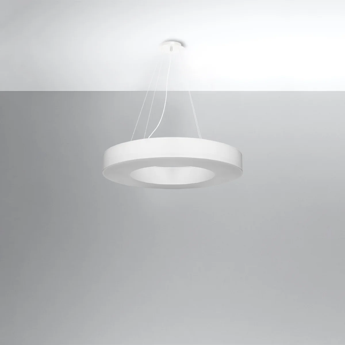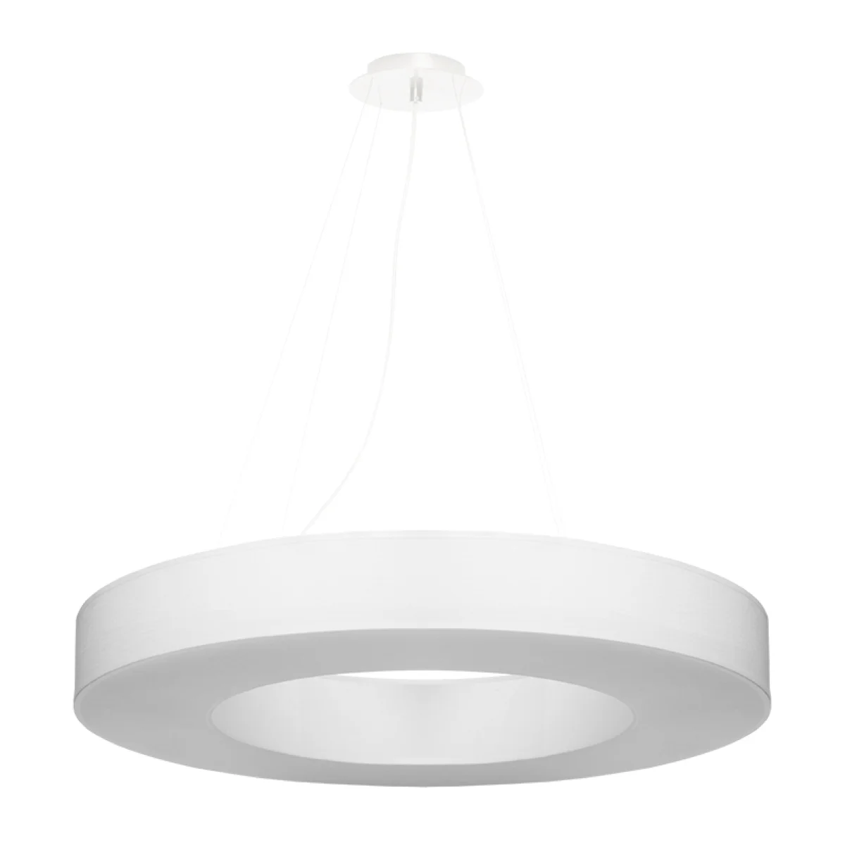 Vsak, ki si želi na nebanalen način opremiti svoje prostore in jih osvetliti na edinstven način, bi moral uporabiti lestence iz serije SATURNO SLIM. Zahvaljujoč okrogli obliki, hkrati ozkemu prerezu in širokemu obsegu, lestenci SATURNO SLIM odlično izgledajo predvsem v prostorih, kjer je prevladujoča tema geometrija, minimalizem in sodobnost. Vendar pa se lestenci serije SATURNO SLIM dobro obnesejo ne le v sodobni notranji opremi, ampak se tudi dobro izkažejo v tradicionalnih prostorih. || Žarnica: E27, 6x60W, 6x15W LED, 50-60Hz, ~ 220-230V, IP20, razred naprave I Žarnica ni vključena. Dimenzije: 70/70/102 cm Dimenzija senčnika: 70/12 cm Material: tkanina, PVC, jeklo Barva: bela