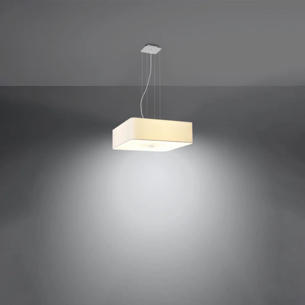 Odlična rešitev za vse, ki si želijo vlagati v eleganco, oblikovalski stil in nevsakdanje rešitve, so lestenci, stropne luči in stenske svetilke serije LOKKO. Te elegantne svetilke se odlično obnesejo v prostorih, kjer prevladuje geometrija, pravi koti in oblike. Serija LOKKO je odličen dodatek minimalističnim, sodobnim notranjim oblikovanjem. Lestenci, stropne luči in stenske svetilke serije LOKKO se bodo odlično predstavili v vseh prostorih, kjer so uporabljene spuščene stropove. || Žarnica: E27, 5x60W, 5x15W LED, 50-60Hz, ~ 220-230V, IP20, razred naprave I Žarnica ni vključena. Dimenzije: 45/45/105 cm Dimenzija senčnika: 45/15 cm Material: tkanina, steklo, jeklo Barva: bela