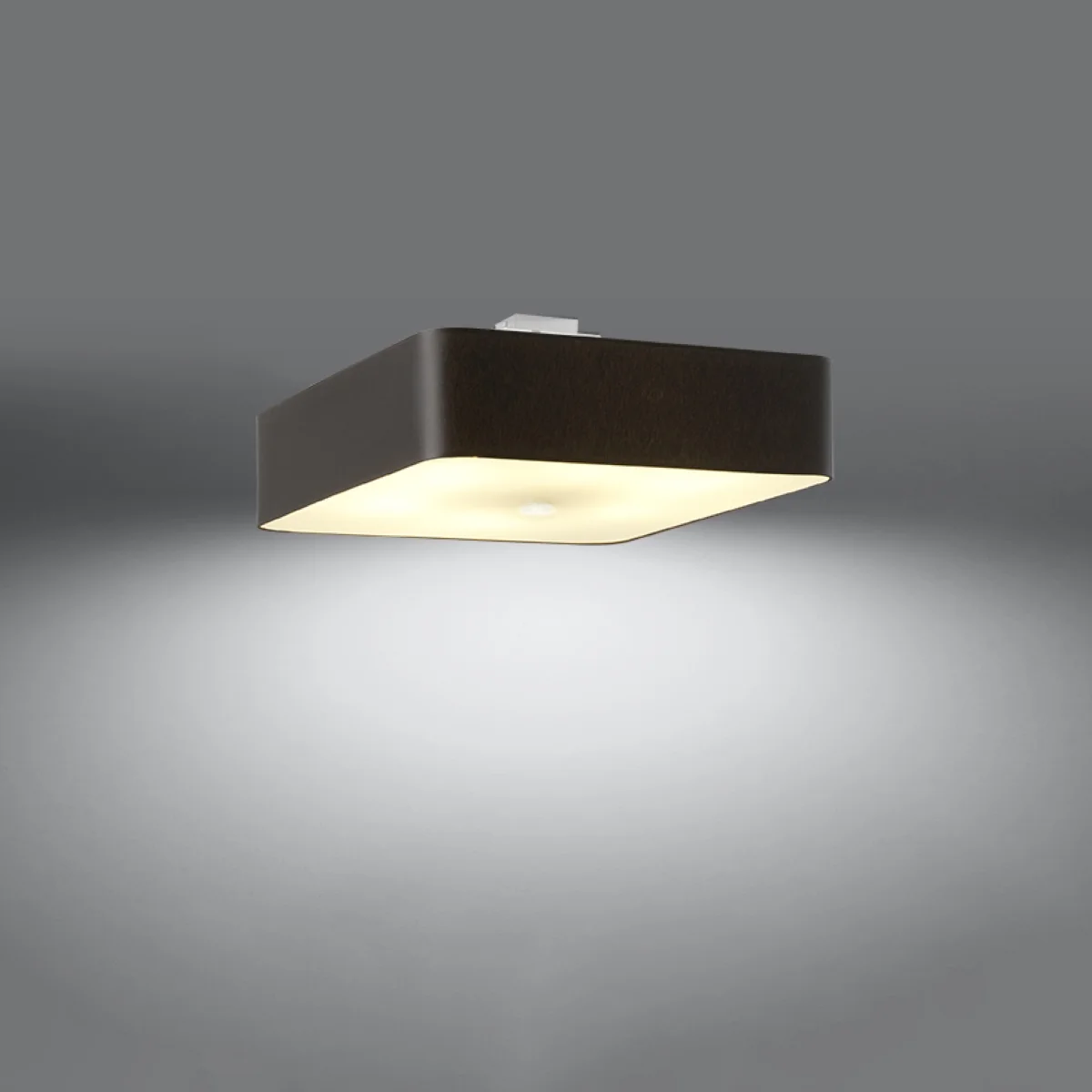 Odlična rešitev za vse, ki si želijo vlagati v eleganco, oblikovalski stil in nevsakdanje rešitve, so lestenci, stropne luči in stenske svetilke serije LOKKO. Te elegantne svetilke se odlično obnesejo v prostorih, kjer prevladuje geometrija, pravi koti in oblike. Serija LOKKO je odličen dodatek minimalističnim, sodobnim notranjim oblikovanjem. Lestenci, stropne luči in stenske svetilke serije LOKKO se bodo odlično predstavili v vseh prostorih, kjer so uporabljene spuščene stropove. || Žarnica: E27, 5x60W, 5x15W LED, 50-60Hz, ~ 220-230V, IP20, razred naprave I Žarnica ni vključena. Dimenzije: 55/55/25 cm Material: tkanina, steklo, jeklo Barva: črna, bela