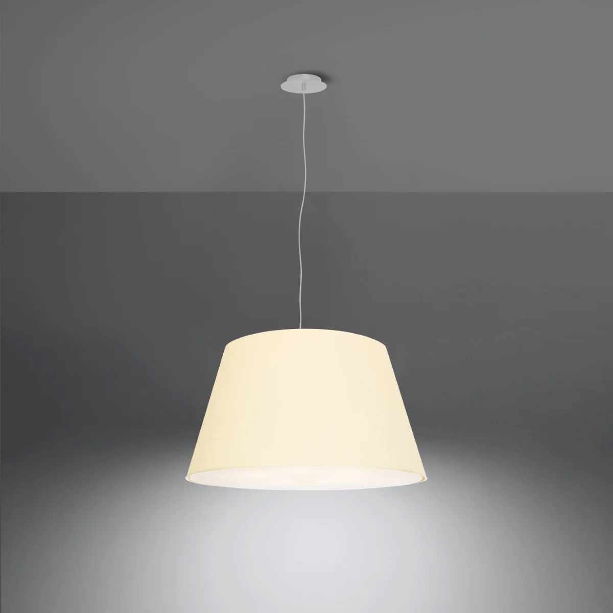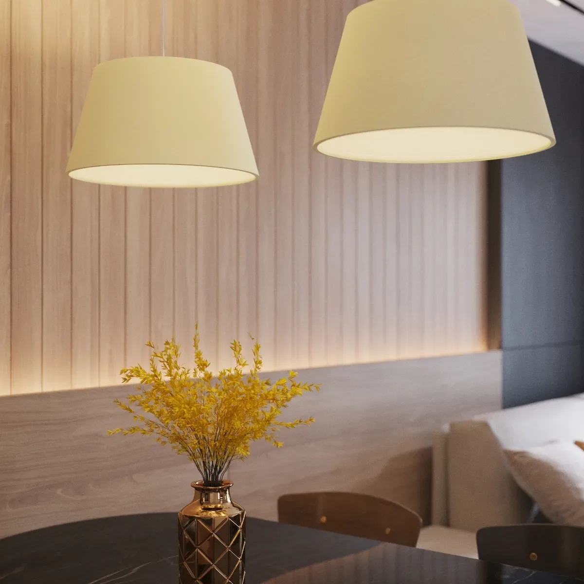 Značilne značilnosti lestencev serije CONO so odlična kakovost, eleganca in slog. To univerzalni lestenci, ki bodo odlično izgledali tako v sodobnih prostorih kot v tradicionalnih prostorih. Lestenci serije CONO zaradi svoje elegance in univerzalne, tipične oblike lahko brezskrbno uporabimo v vsakem prostoru. Najbolje se bodo predstavili v kuhinji, kjer jih bodo odlično osvetlili. Vendar pa so tudi odličen aranžerski poudarek v dnevnih sobah, hodnikih ali v majhnih prostorih otroških sob, mladinskih sob in spalnicah. || Žarnica: E27, 3x60W, 3x15W LED, 50-60Hz, ~ 220-230V, IP20, razred naprave I Žarnica ni vključena. Dimenzije: 45/45/114 cm Dimenzija senčnika: 45/24 cm Material: tkanina, PVC, jeklo Barva: bela