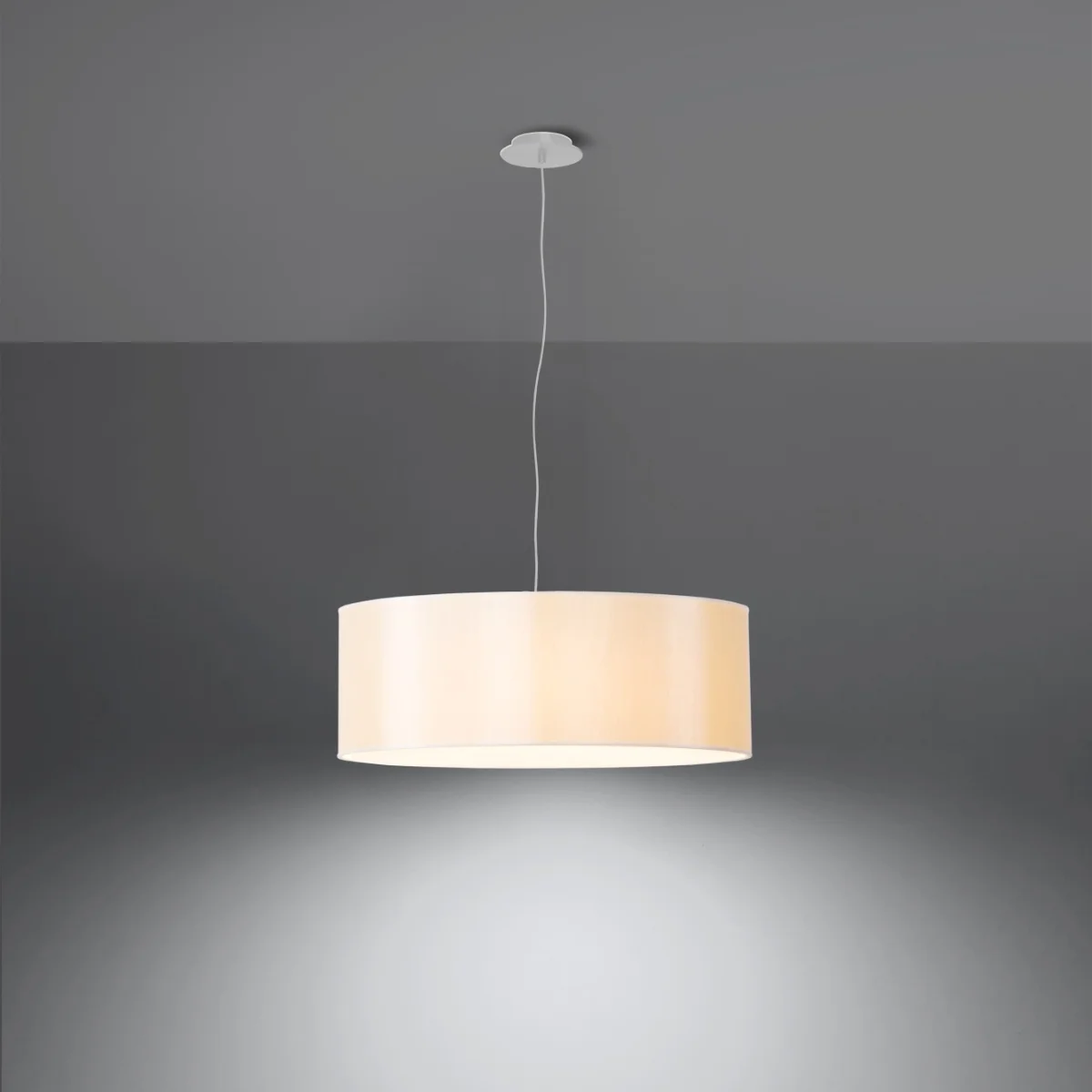 Značilne značilnosti lestencev serije ROLLO so odlična kakovost, eleganca in slog. To so univerzalni lestenci, ki bodo odlično izgledali tako v sodobnih prostorih kot v tradicionalnih prostorih. Lestenci serije ROLLO zaradi svoje elegance in univerzalne, tipične oblike lahko brez težav uporabimo v vsakem prostoru. Najbolje se bodo predstavili v kuhinji, kjer jih bodo odlično osvetlili. Vendar pa so tudi odličen aranžerski poudarek v dnevnih sobah, hodnikih ali v majhnih prostorih otroških sob, mladinskih sob in spalnicah. || Žarnica: E27, 3x60W, 3x15W LED, 50-60Hz, ~ 220-230V, IP20, razred naprave I Žarnica ni vključena. Dimenzije: 45/45/106 cm Dimenzija senčnika: 45/16 cm Material: tkanina, PVC, jeklo Barva: bela