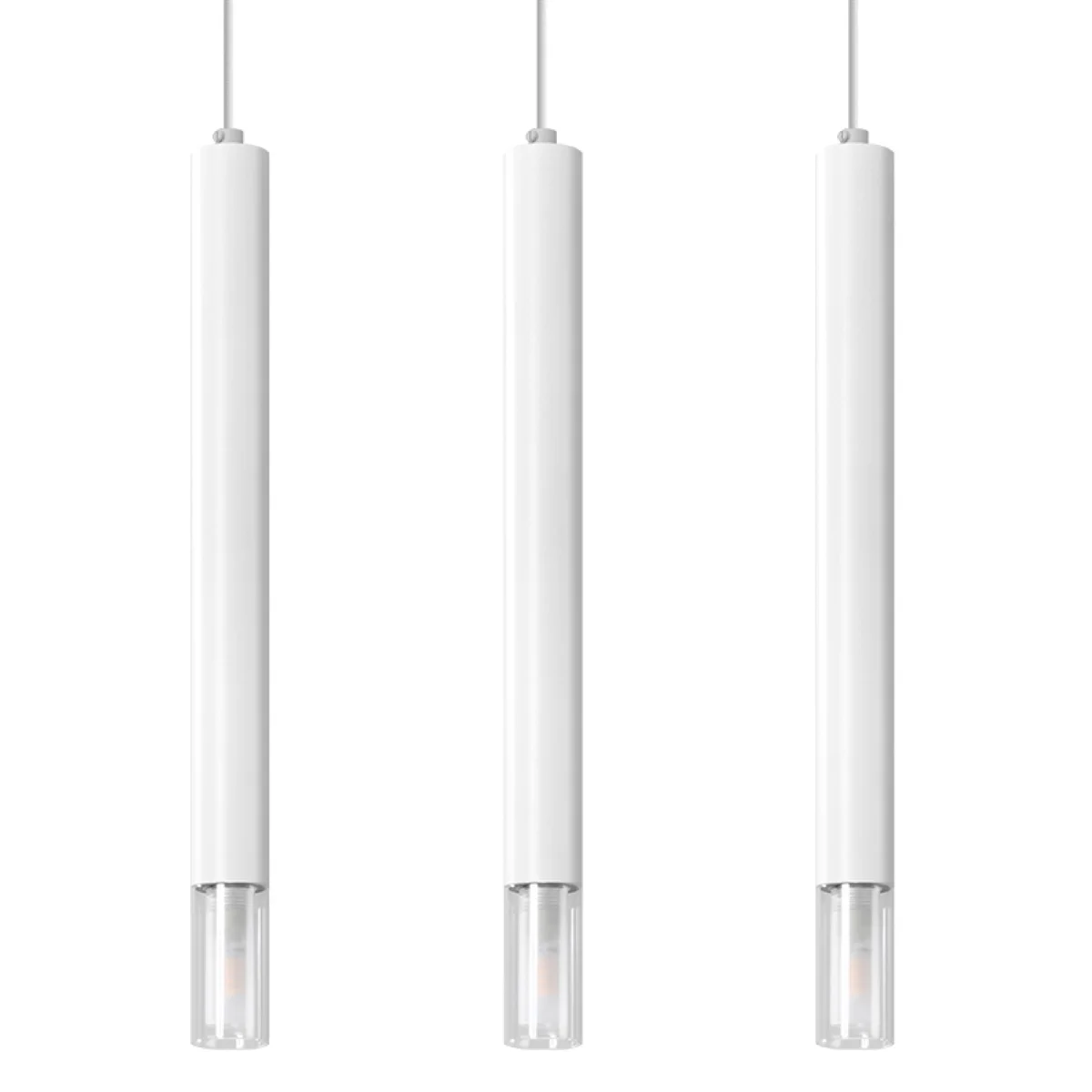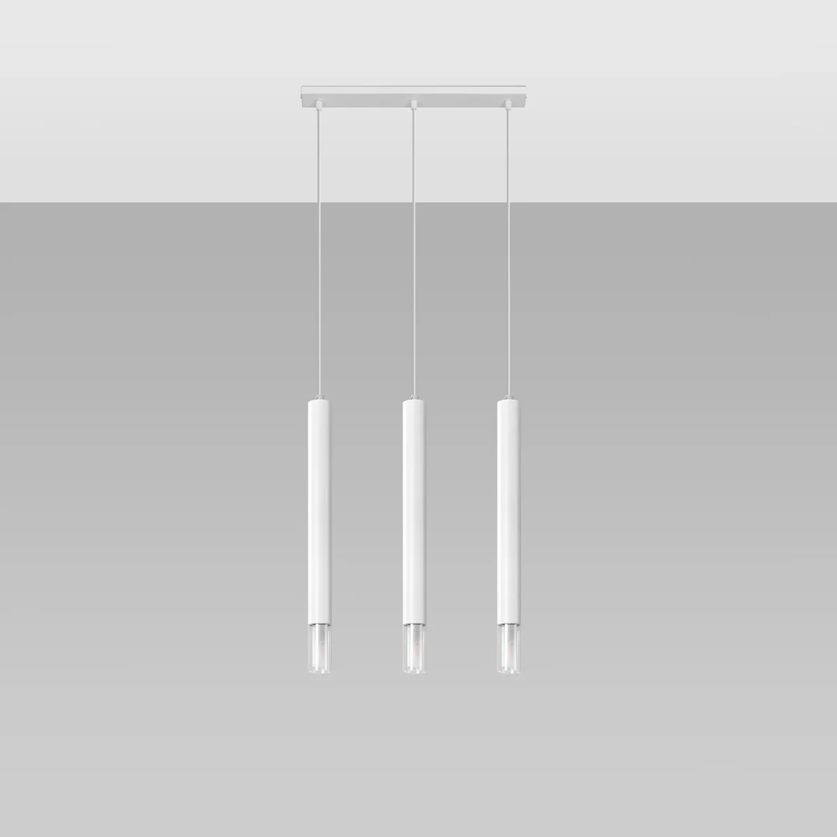 Subtilna, sodobna in minimalistična - to je viseča svetilka WEZYR. Njen usmerjen svetlobni snop razprši večerno temo in v prostoru ustvari prijetno vzdušje. Naj bo to jedilnica, kuhinja, spalnica ali kopalnica - univerzalna svetilka WEZYR bo odlična izbira za vsako vrsto prostora. Ohišje svetilke je izdelano iz stekla in prašno lakiranega jekla - odlično bo videti v loft, industrijskih in modernih notranjostih. Z dvema univerzalnima barvnima možnostma - belo in črno - se bo popolnoma ujemala z vašim notranjim dizajnom. || Žarnica: G9, 3x12W LED, 50-60Hz, ~ 220-230V, IP20, razred naprave I Žarnica ni vključena. Dimenzije: 45/6/120 cm Dimenzija senčnika: 4/50 cm Material: jeklo, steklo Barva: bela