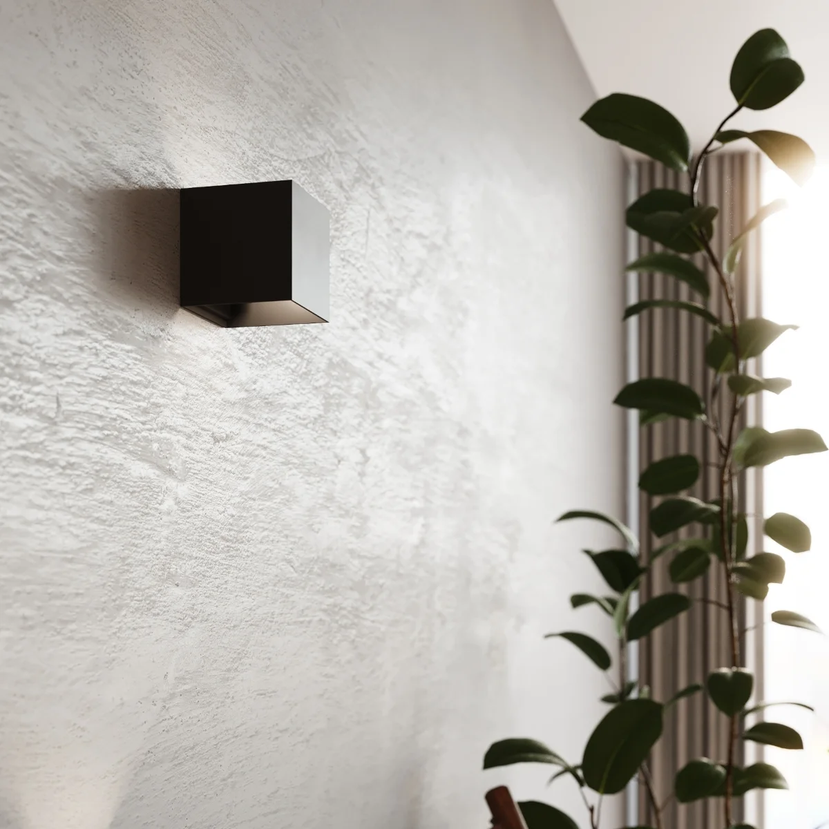 Stenska svetilka LUCA črna LED IP54 (10x10x10cm)