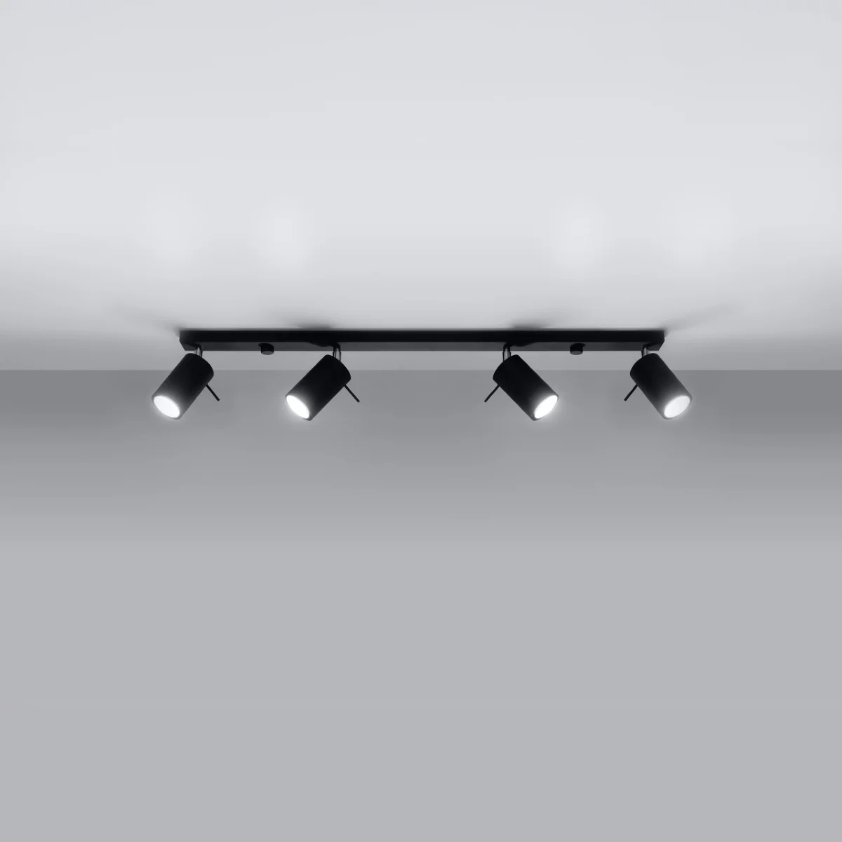 RING svetilke združujejo minimalistični dizajn z najvišjo funkcionalnostjo. Vsi modeli iz kolekcije imajo kromirane spoje, ki omogočajo nastavitev svetlobnih žarkov. Moderne RING svetilke se odlično znajdejo v loftih in prostorih, opremljenih v minimalističnem in industrijskem slogu. Natančnost izdelave in visokokakovostni materiali zagotavljajo brezhiben videz in dolgo življenjsko dobo. || Žarnica: GU10, 4x40W, 4x12W LED, 50-60Hz, ~ 220-230V, IP20, razred naprave I Žarnica ni vključena. Dimenzije: 80/6/16 cm Material: jeklo Barva: črna