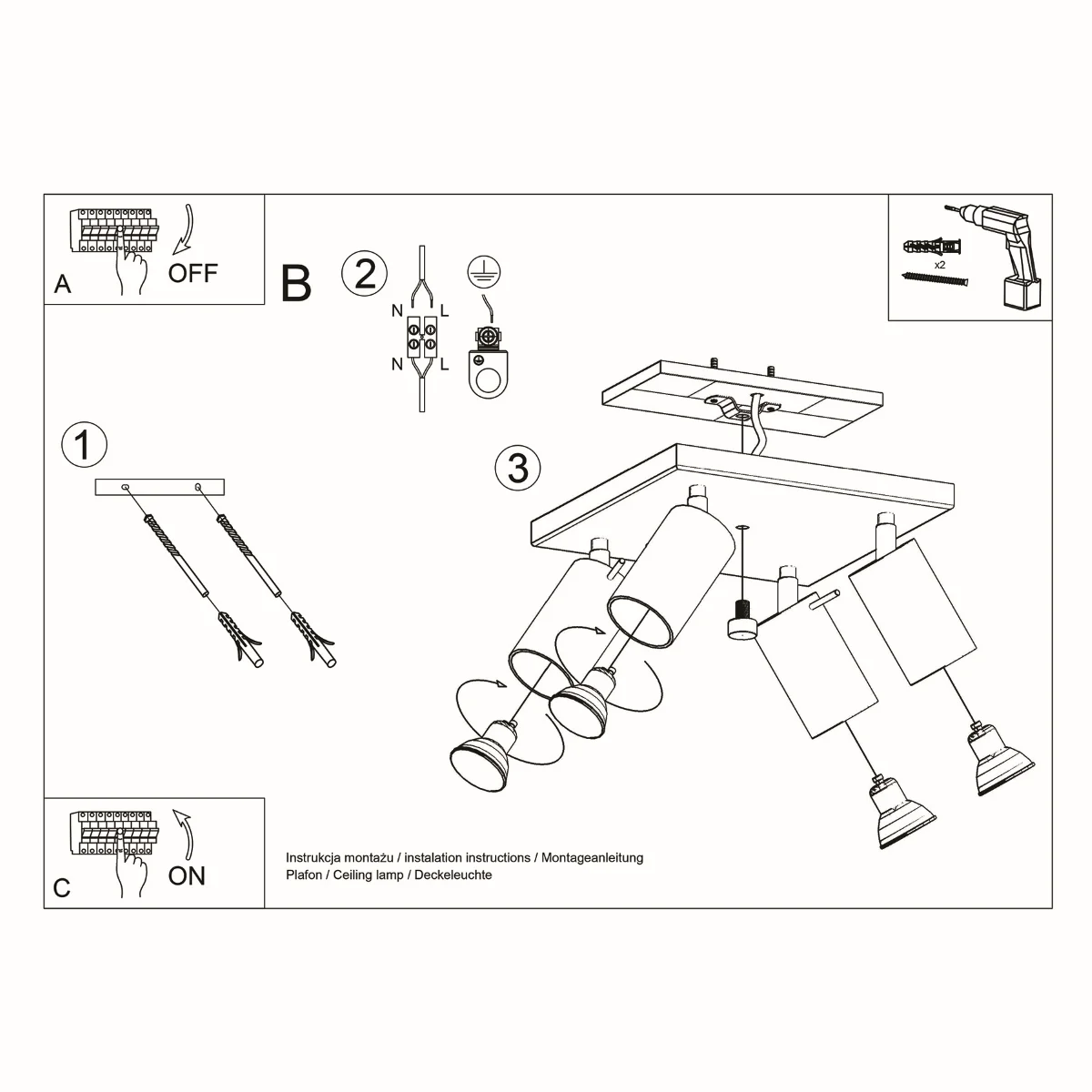 RING svetilke združujejo minimalistični dizajn z najvišjo funkcionalnostjo. Vsi modeli iz kolekcije imajo kromirane spoje, ki omogočajo nastavitev svetlobnih žarkov. Moderne RING svetilke se odlično znajdejo v loftih in prostorih, opremljenih v minimalističnem in industrijskem slogu. Natančnost izdelave in visokokakovostni materiali zagotavljajo brezhiben videz in dolgo življenjsko dobo. || Žarnica: GU10, 4x40W, 4x12W LED, 50-60Hz, ~ 220-230V, IP20, razred naprave I Žarnica ni vključena. Dimenzije: 25/25/16 cm Material: jeklo Barva: siva