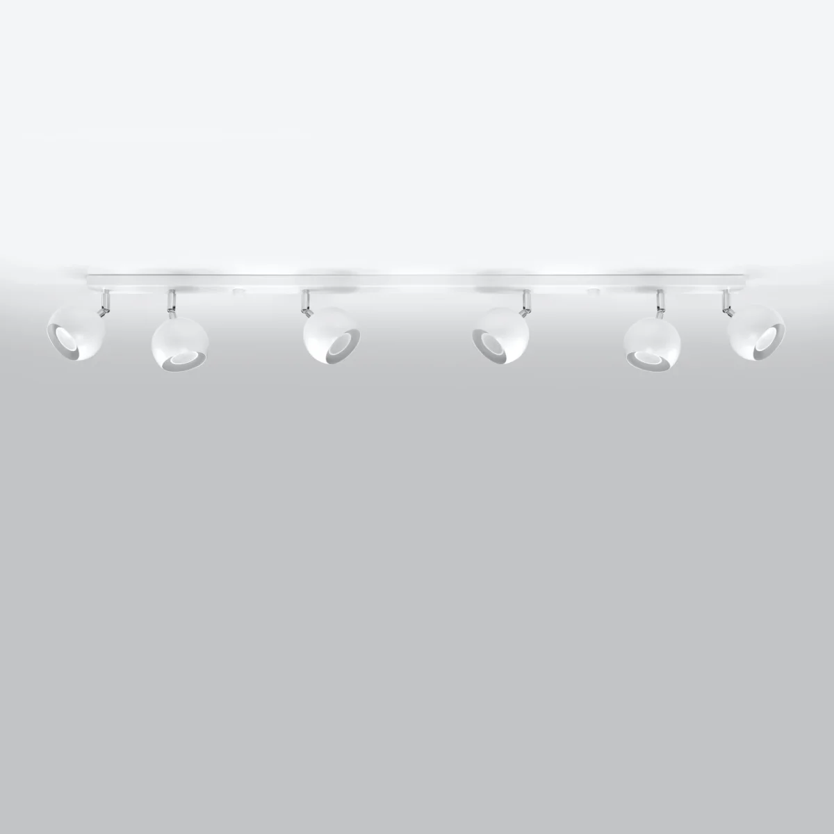 Ta svetilka je idealen primer, kako lahko na enostaven način osvetlimo tudi veliko sobo, in to v vsakem njenem kotičku. Serija svetilk ima eno, dve, tri in štiri-točkovne vire svetlobe, v katerih lahko namestimo moderne LED žarnice. Pomembno je, da se lahko uporablja ne samo v minimalistični ureditvi prostora. To je predlog tudi za ultra-moderno sobo in dnevne sobe ali pisarniške prostore, ki se odlikujejo po umirjeni barvni shemi in elegantnih dodatkih. || Žarnica: GU10, 6x40W, 6x12W LED, 50-60Hz, ~ 220-230V, IP20, razred naprave I Žarnica ni vključena. Dimenzije: 118/10/16 cm Material: jeklo Barva: bela