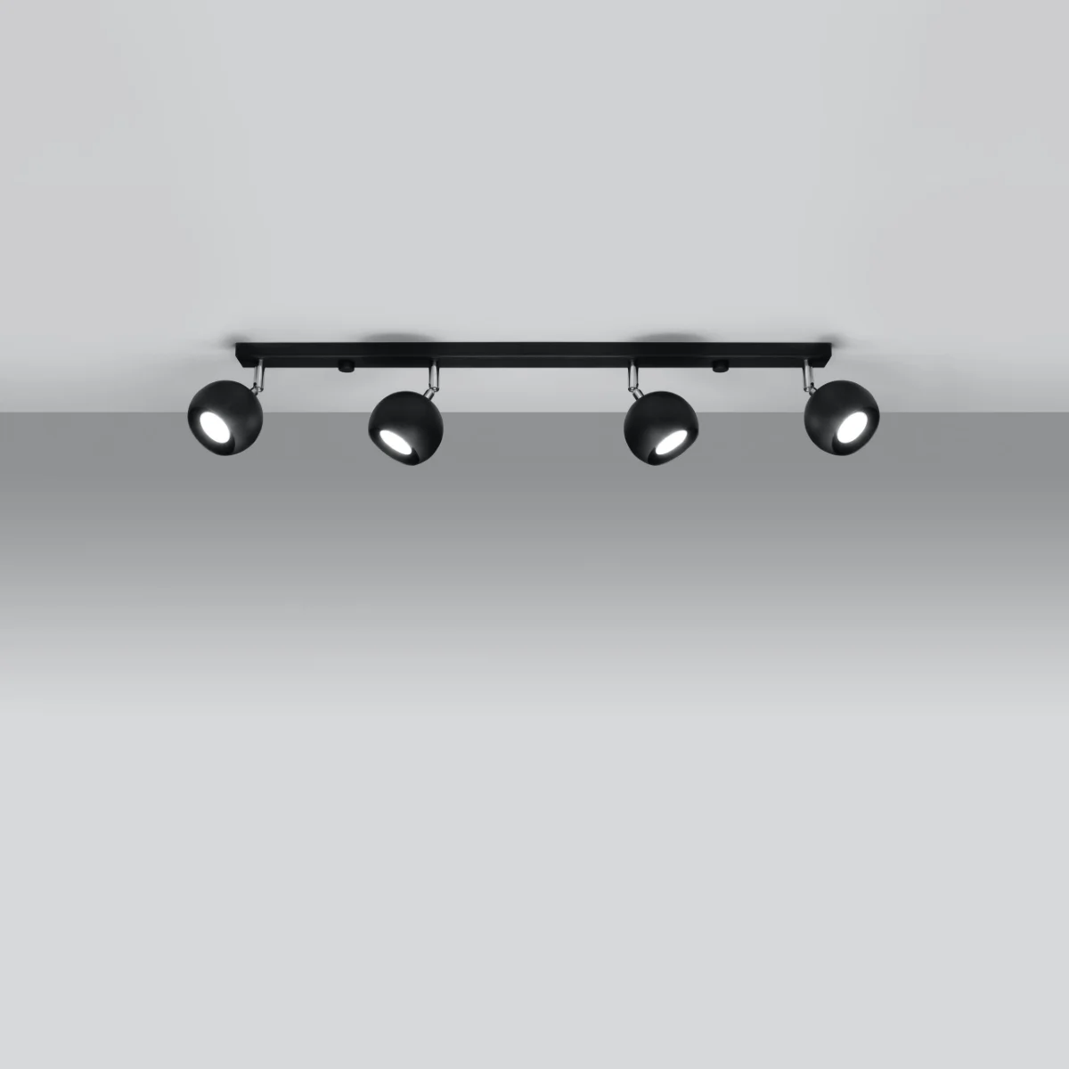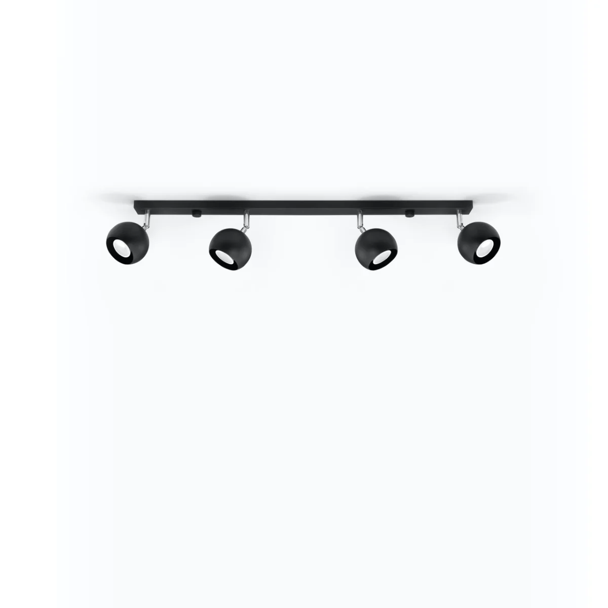 Ta svetilka je idealen primer, kako lahko na enostaven način osvetlimo tudi veliko sobo, in to v vsakem njenem kotičku. Serija svetilk ima eno, dve, tri in štiri-točkovne vire svetlobe, v katerih lahko namestimo moderne LED žarnice. Pomembno je, da ni namenjena le minimalistični notranjosti. To je predlog tudi za ultra-moderno sobo ali dnevno sobo ali pisarniški prostor, ki se odlikujejo po umirjeni barvni paleti in elegantnih dodatkih. || Žarnica: GU10, 4x40W, 4x12W LED, 50-60Hz, ~ 220-230V, IP20, razred naprave I Žarnica ni vključena. Dimenzije: 80/10/16 cm Material: jeklo Barva: črna