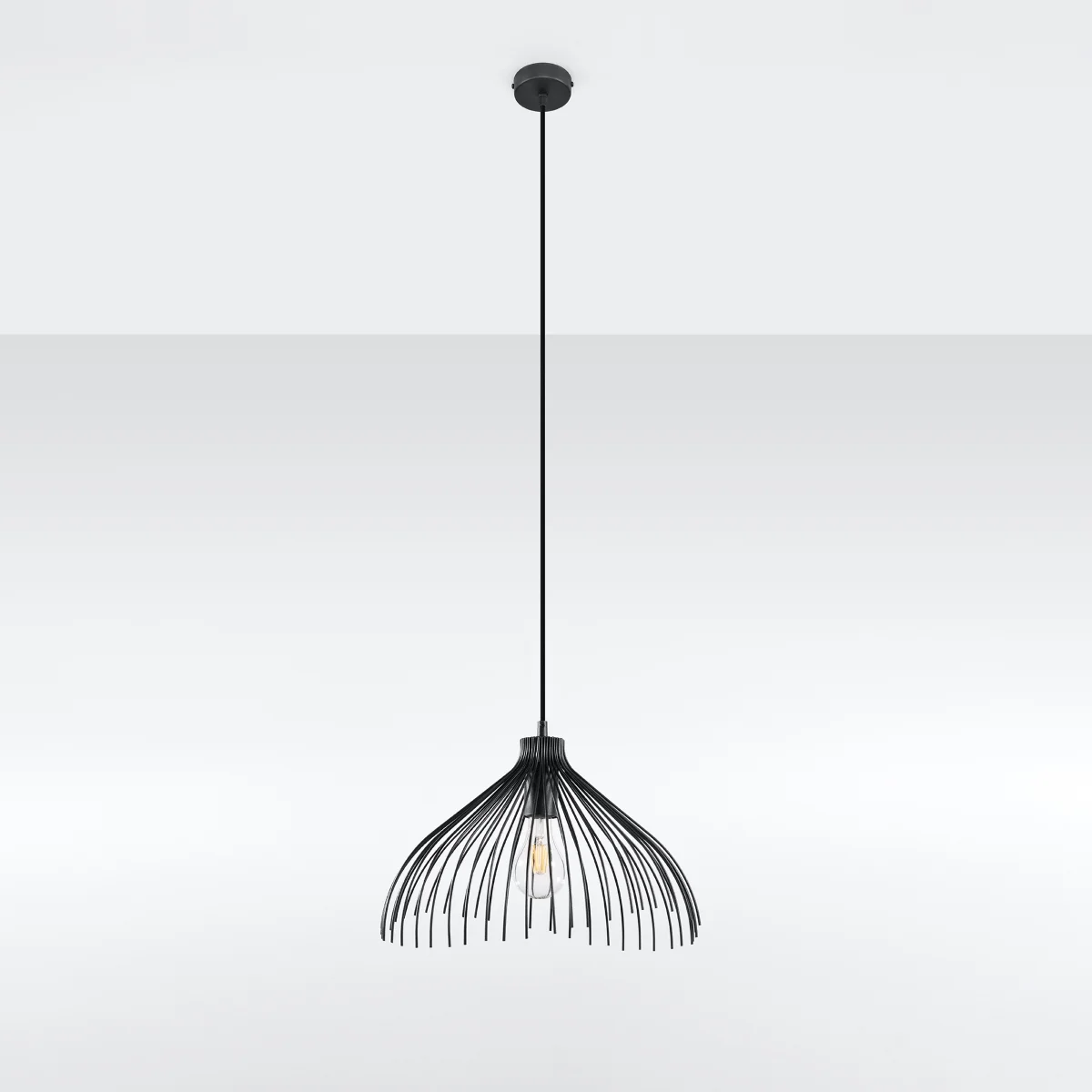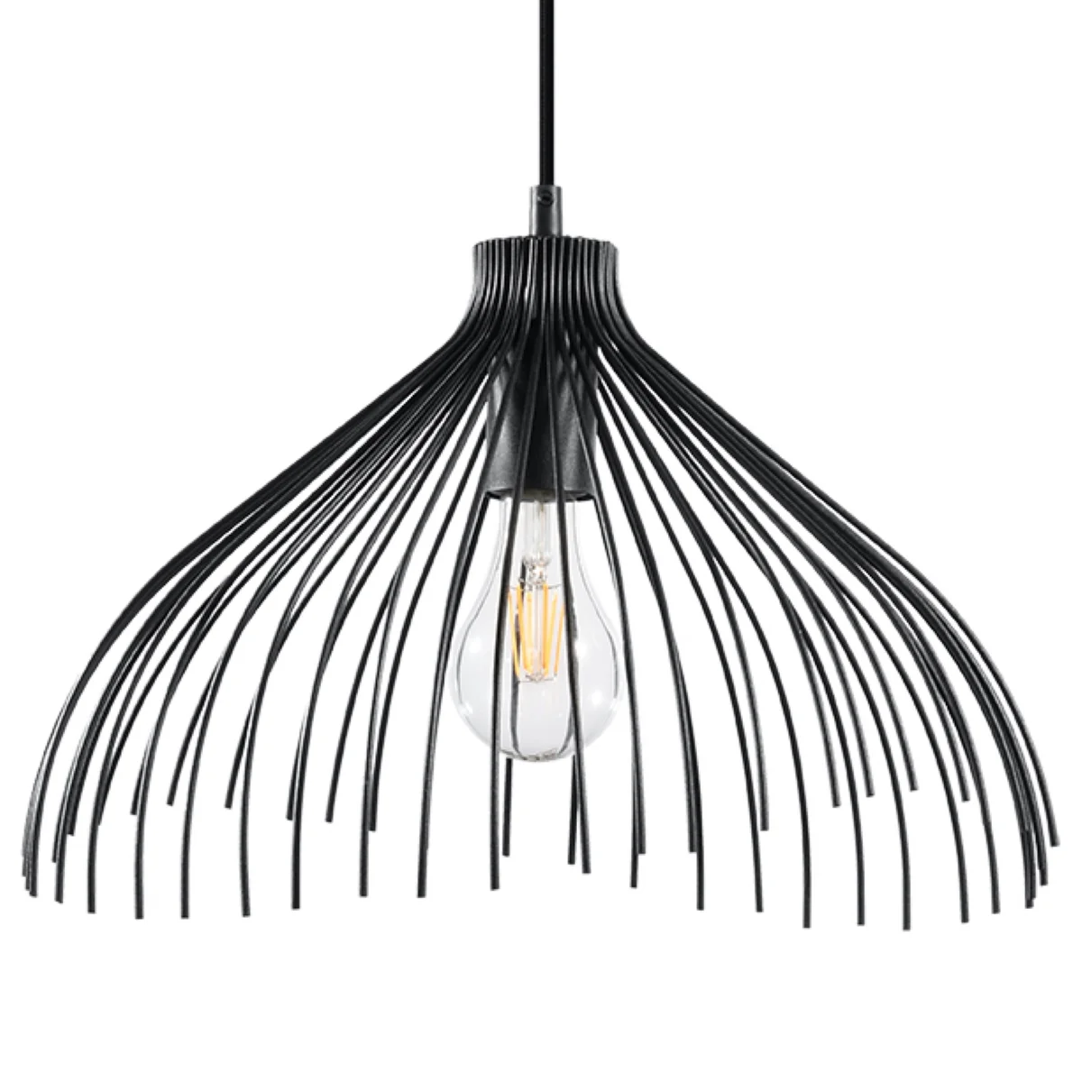 Neobičajna zbirka visečih svetilk izdelanih iz jekla. Način izdelave v kombinaciji z dovolj pogostim oblikom naredi, da ob takšni svetilki ne morete ostati ravnodušni. Še posebej dobro se predstavlja v notranjosti tipa loft. || Žarnica: E27, 1x60W, 1x15W LED, 50-60Hz, ~ 220-230V, IP20, razred naprave I Žarnica ni vključena. Dimenzije: 40/40/125 cm Dimenzija senčnika: 40/25 cm Material: jeklo Barva: črna