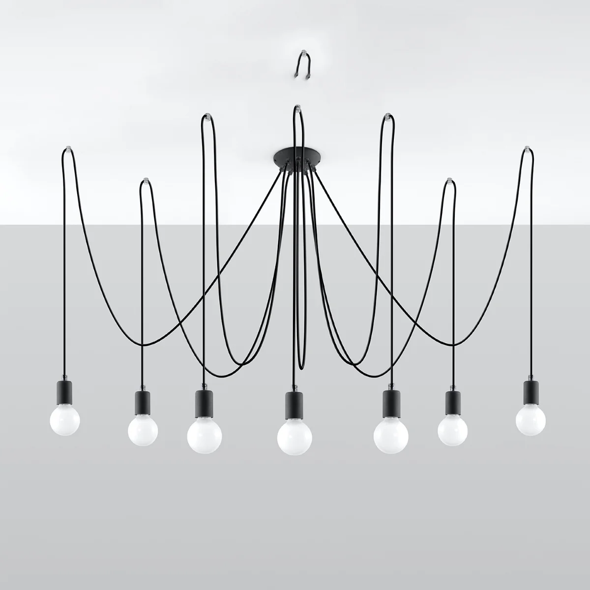 Svetilke EDISON - absolutno MUST-HAVE! Zbirka je zelo raznolika, zato jo lahko uporabite v vsakem notranjem prostoru in mu dajete edinstven značaj. Svetilka v slogu je zanimiva ideja za oblikovanje notranje razsvetljave. Okvir svetilke, ki je obešen na črnih kablih v pletenici, ki so pritrjeni na strop, lahko z velikim številom dolgih rok osvetli vsak kot prostora. Ta model je zagotovo namenjen individualistom, ki cenijo umetniški slog.