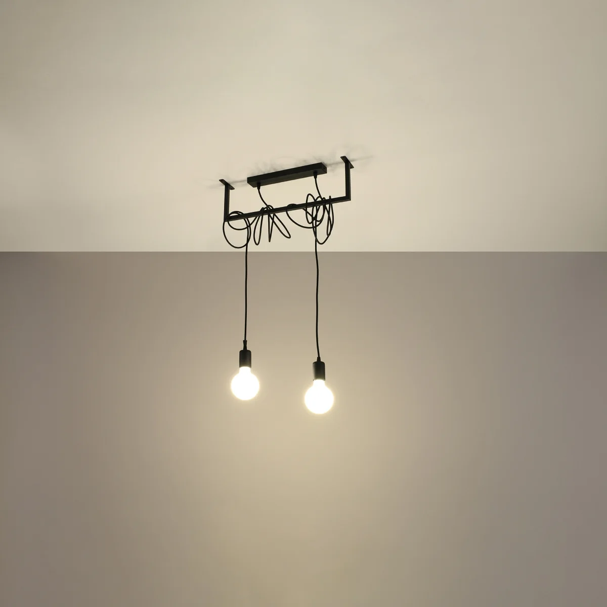 Moderen, izjemno edinstven, a preprost dizajn serije SALAMANCA bo lep dodatek k stilskemu notranjemu prostoru. Okvir, okoli katerega je ovit kabel, ki je končan z oblikovalskimi žarnicami, je rešitev za drzne ljudi, katerih notranjost se izstopa med drugimi. To je učinkovit način, da se izstopi med drugimi! Lampa SALAMANCA se bo odlično obnesla nad mizo v jedilnici, kjer bo osvetlila čas, preživet za družinsko mizo. || Žarnica: E27, 2x60W, 2x15W LED, 50-60Hz, ~ 220-230V, IP20, razred naprave I Žarnica ni vključena. Dimenzije: 50/4,5/150 cm Material: tkanina, jeklo Barva: črna