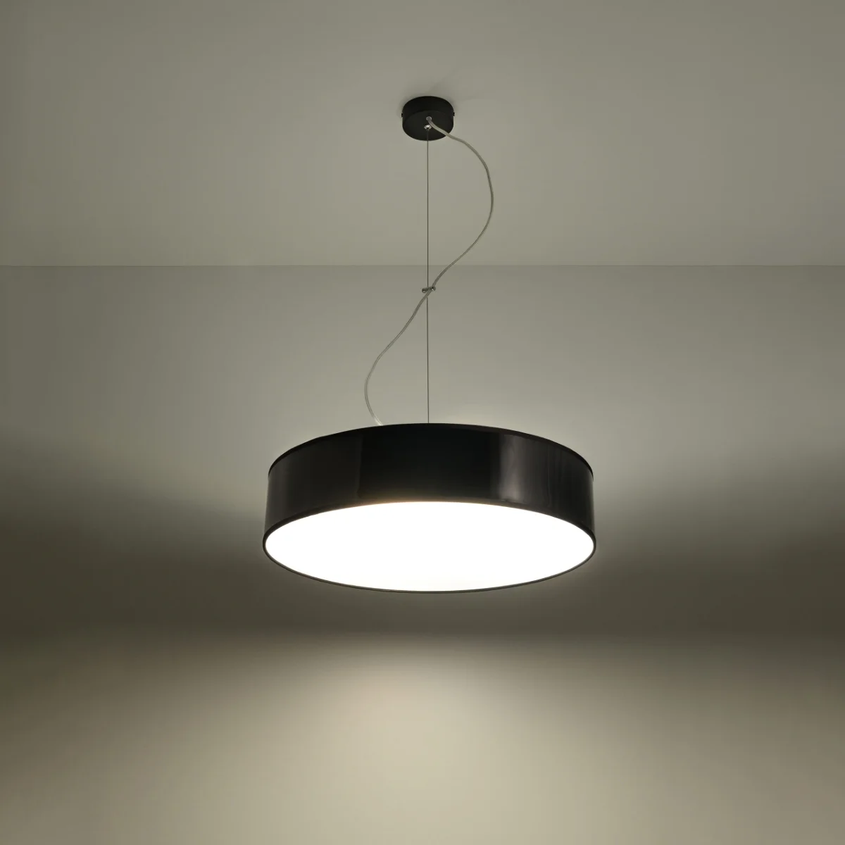 Izbira vrste osvetlitve ima ogromen pomen za to, ali nam bo uspelo doseči skladen značaj notranjosti, natančno takšen, kot si želimo. Oblikovalske stropne svetilke ARENA so odličen dodatek k sodobnim aranžmajem. Na voljo v več barvnih različicah in velikostih, prilagojene seriji ARENA, omogočajo ustvarjanje različnih postavitev na stropu, ko potrebujemo več kot eno svetilko za celotno sobo. Preprostost stila in izjemna kakovost dajeta seriji izjemno eleganten značaj. || Žarnica: E27, 3x60W, 3x15W LED, 50-60Hz, ~ 220-230V, IP20, razred naprave I Žarnica ni vključena. Dimenzije: 45/45/111 cm Dimenzija senčnika: 45/11 cm Material: PVC Barva: črna