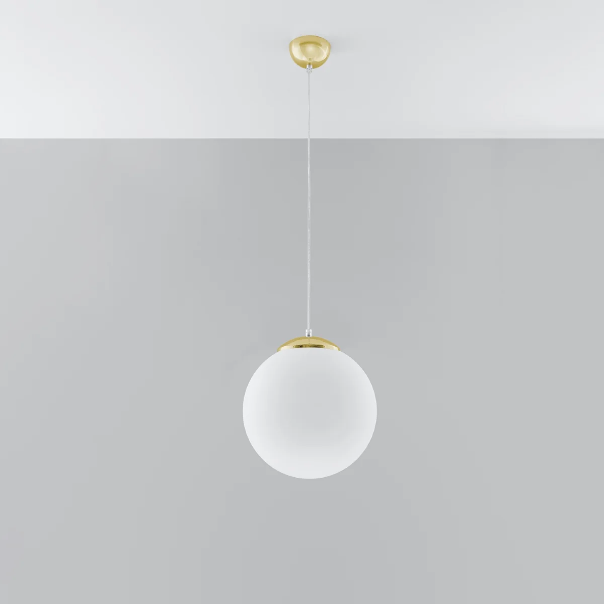 Naj se zasveti! In popoln slog. V svoj dom povabi obešalno svetilko UGO. Njen mlečno beli steklo enakomerno razpršuje svetlo v vse smeri. Lepa, preprosta oblika in zlate poudarke svetilke UGO se bodo odlično podale v moderni dnevni sobi v glamuroznem slogu ali v minimalistični spalnici, ki ji želiš dodati malo toplote. Izberi velikost, ki najbolj ustreza tvojemu domu. V kolekciji svetilk UGO boste našli stekla v treh velikostih. Obesite eno ali več in ustvarite skladno postavitev po celotnem domu.