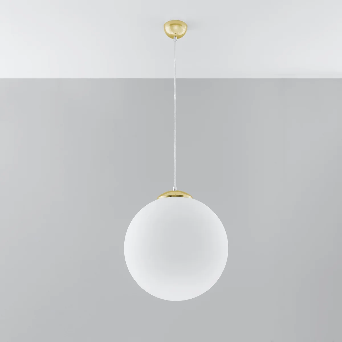 Naj se zasveti! In popoln slog. V svoj dom povabi obešalno svetilko UGO. Njen mlečno beli steklo enakomerno razpršuje svetlo v vse smeri. Lepa, preprosta oblika in zlate poudarke svetilke UGO se bodo odlično podale v moderni dnevni sobi v glamuroznem slogu ali v minimalistični spalnici, ki ji želiš dodati malo toplote. Izberi velikost, ki najbolj ustreza tvojemu domu. V kolekciji svetilk UGO boste našli stekla v treh velikostih. Obesite eno ali več in ustvarite skladno postavitev po celotnem domu.