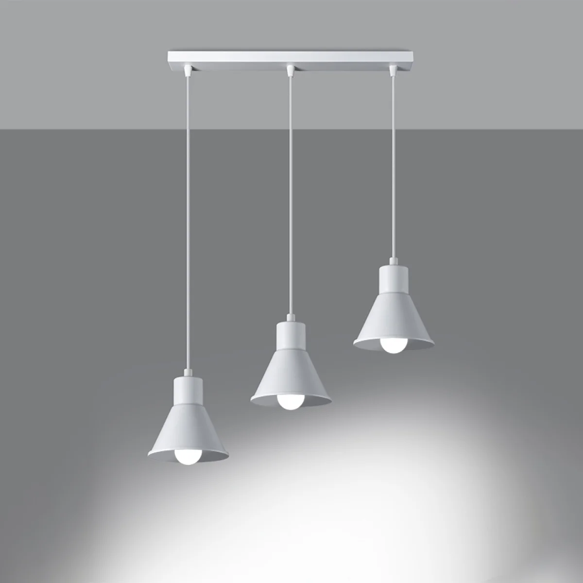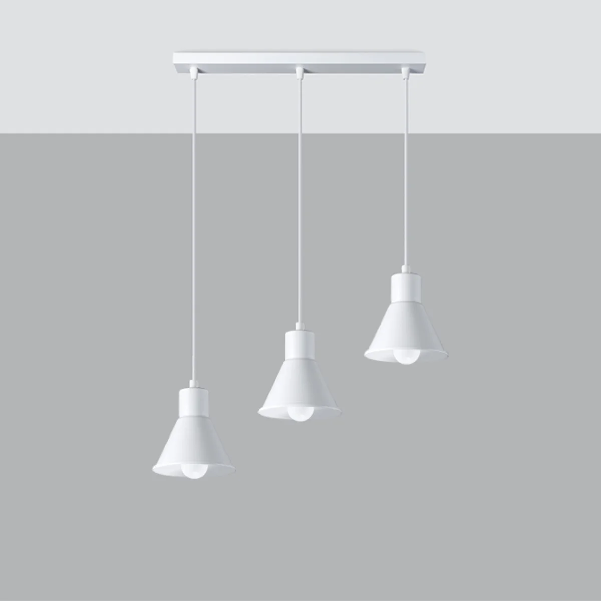 TALEJA je serija klasičnih visečih svetilk z 1 ali 3 senčili. Oblikovane so tako, da so rahlo narazen, zato zagotavljajo veliko svetlobe, ki se enakomerno porazdeli po prostoru. Zaradi univerzalne zasnove so uspešna izbira za vsak interier. S svojo preprosto obliko pušča prostor za druge oblikovalske elemente, različica s 3 senčili na različnih višinah pa lahko pritegne pozornost drugih. Na voljo je v dveh klasičnih barvah - neprebojni črni in nedotaknjeni beli. || Žarnica: E27, 3x60W, 3x15W LED, 50-60Hz, ~ 220-230V, IP20, razred naprave I Žarnica ni vključena. Dimenzije: 45/14/120 cm Dimenzija senčnika: 14/14 cm Material: jeklo Barva: bela