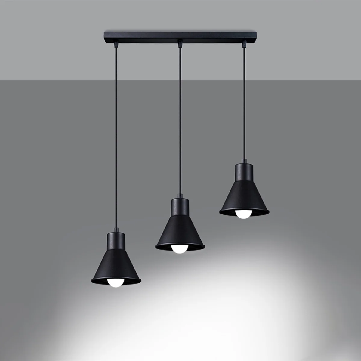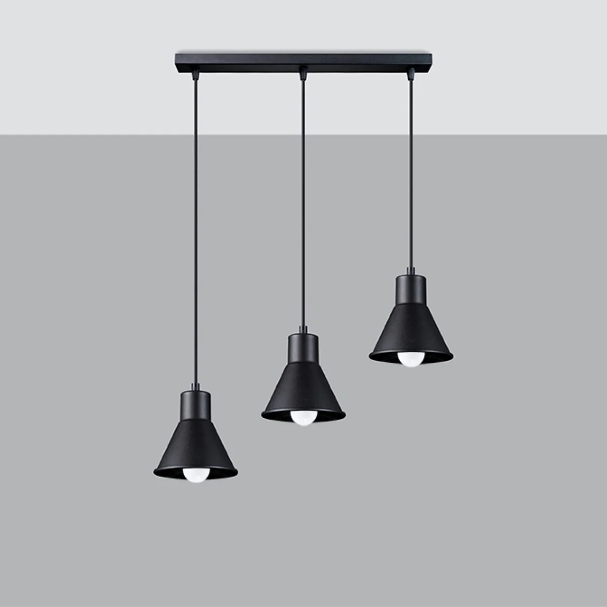 TALEJA je serija klasičnih visečih svetilk z 1 ali 3 senčili. Oblikovane so tako, da so rahlo narazen, zato zagotavljajo veliko svetlobe, ki se enakomerno porazdeli po prostoru. Zaradi univerzalne zasnove so uspešna izbira za vsak interier. S svojo preprosto obliko pušča prostor za druge oblikovalske elemente, različica s 3 senčili na različnih višinah pa lahko pritegne pozornost drugih. Na voljo je v dveh klasičnih barvah - neprebojni črni in nedotaknjeni beli. || Žarnica: E27, 3x60W, 3x15W LED, 50-60Hz, ~ 220-230V, IP20, razred naprave I Žarnica ni vključena. Dimenzije: 45/14/120 cm Dimenzija senčnika: 14/14 cm Material: jeklo Barva: črna