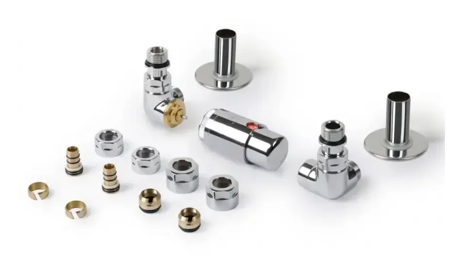 Set Terma DESIGN radiatorskih ventilov AllInOne, 3-osni term., kotna LEVA izvedba, krom