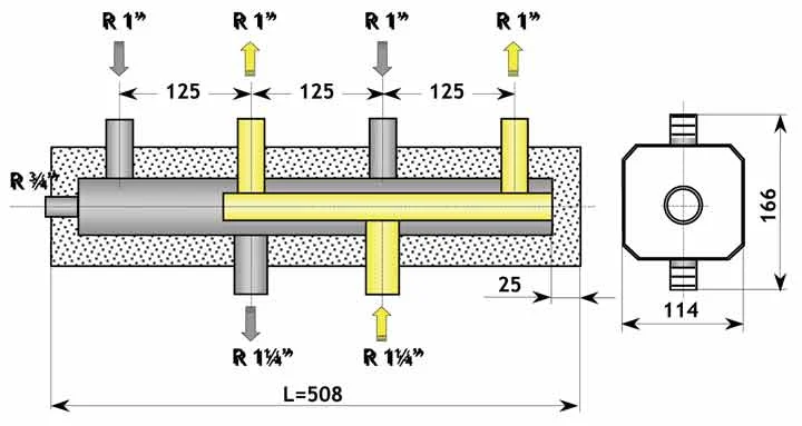 Kotlovski razdelilec za več ogrevalnih krogov z dodatnim priključkom za ekspanzijo / polnjenje in praznenje sistema