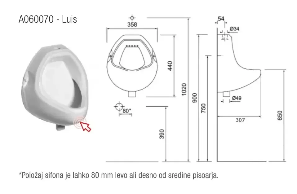 KERAMIKA CREAVIT PISOAR KLJUNASTI, Z VIJAKI