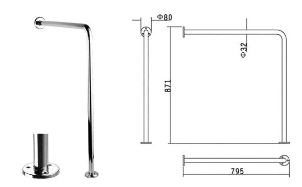 Varnostno držalo Astra - kotno stena - tla 795x871mm