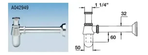 Sifon Ghidini za umivalnik, razstavljivi 31,8mm (5/4), crom